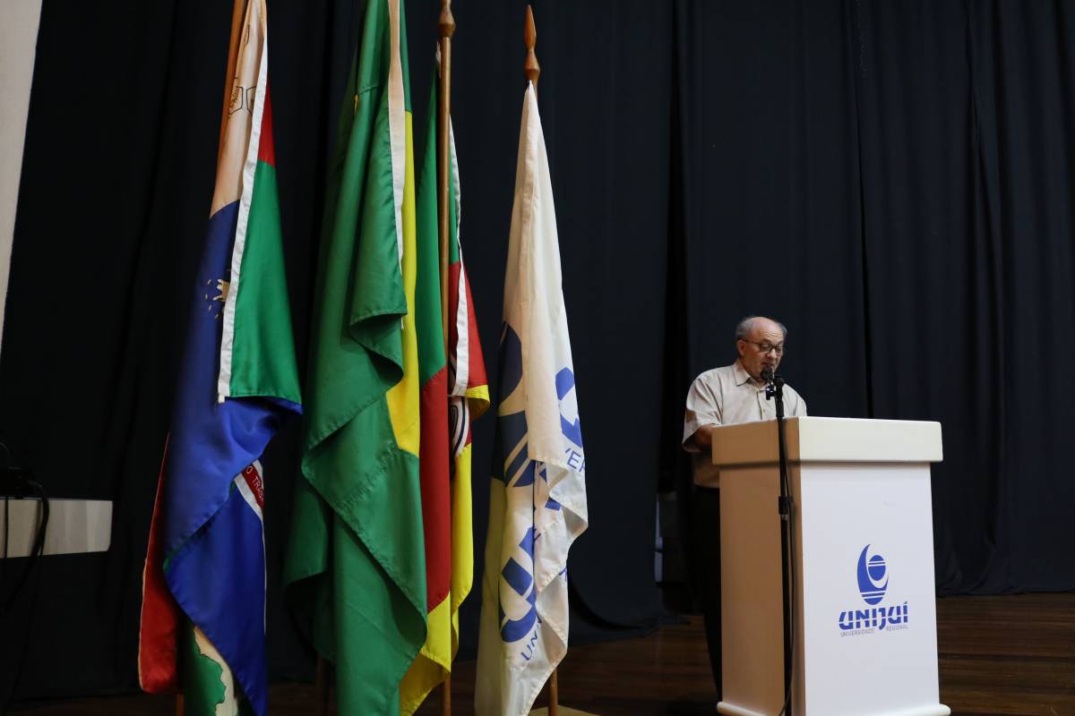 O professor Walter Frantz fez uma reflexão sobre o papel da Universidade e, dentro desta perspectiva, apontou e conceituou o fazer de uma universidade comunitária e sua importância para o contexto em que se insere. “Como sustentar uma universidade sem deixar de ser uma universidade? Este é um grande desafio. Não somos estado, não somos empresa, somos comunidade, o projeto de um coletivo”, salientou. “Universidades comunitárias, tendo seu foco no público, com muito esforço geraram grandes investimentos em infraestrutura e qualificação de profissionais ao longo de décadas, construindo-se e se afirmando a serviço da educação em favor de suas comunidades e regiões”, complementou.