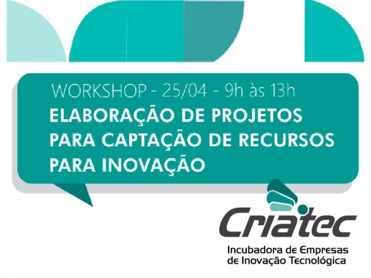 A Incubadora de Empresas de Inovação Tecnológica (CRIATEC) da Unijuí estará realizando na próxima quinta-feira (25), o workshop "Elaboração de Projetos para Captação de Recursos para Inovação", com o consultor Gustavo Moreira do Sebrae. A atividade será realizada a partir das 09h, no espaço Coworking, Sala A 315, no Campus Santa Rosa.
