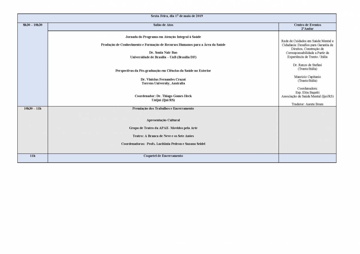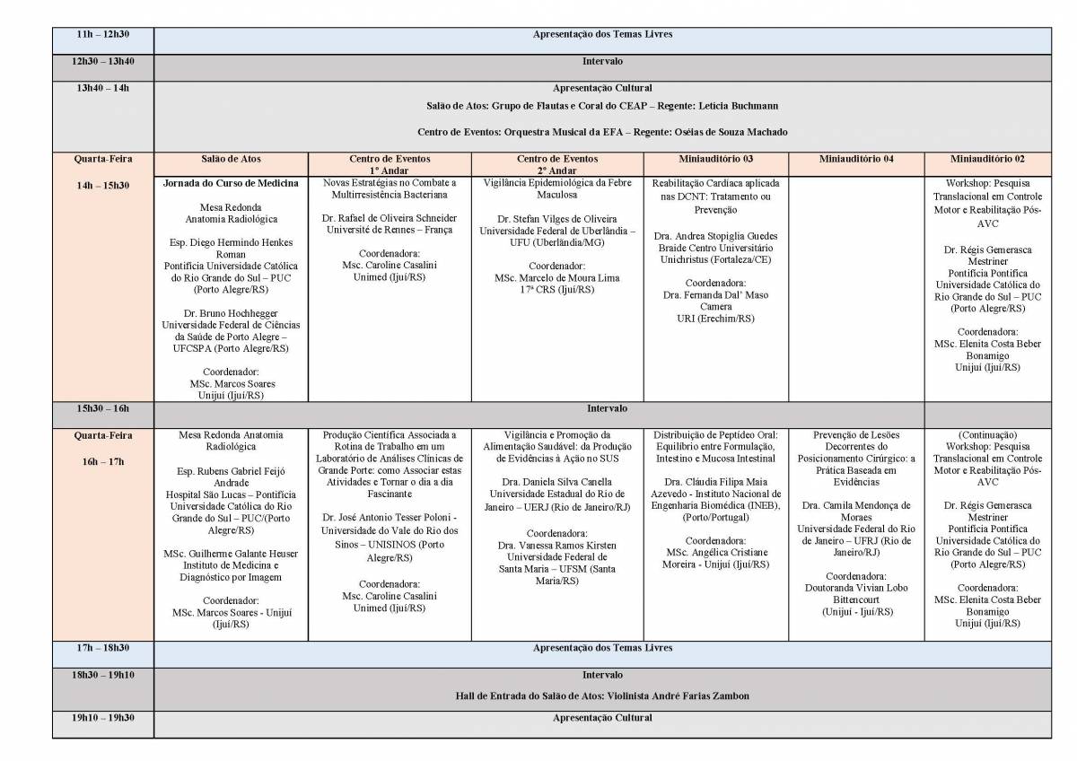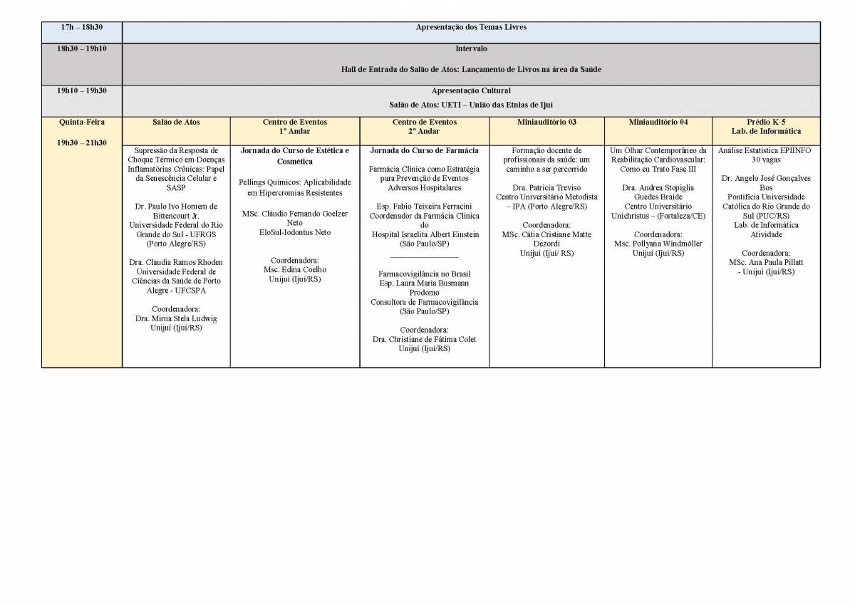 A programação conta também com palestrantes internacionais: Dr. Bruno Filipe Carmelino Cardoso Sarmento, Doutor em Farmácia pela Universidade do Porto; Dr. Vinicius Fernandes Cruzat, pesquisador da Curtin University, Perth WA (Austrália); Dr. Rafael de Oliveira Schneider, pós-doutorado da Université de Rennes (França).