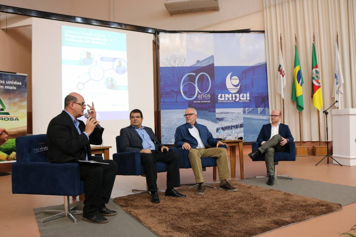 A abertura da Semana Acadêmica contemplou três ambientes com diferentes profissionais. A atividade organizada pelo curso de Gestão de Cooperativas, trouxe como temática o painel, “Inovação e Gestão na era das Tecnologias”, com os painelistas: Gerson José Lauermann, Superintendente OCERGS/SESCOOP-RS, Guilherme Sturm - CEO da Essent Just, Sérgio Feltraco, Diretor Executivo da Fecoagro-RS e a mediação foi realizada pelo professor Pedro Luís Büttenbender. O evento teve participação de um expressivo número de pessoas e autoridades ligadas ao sistema cooperativo.