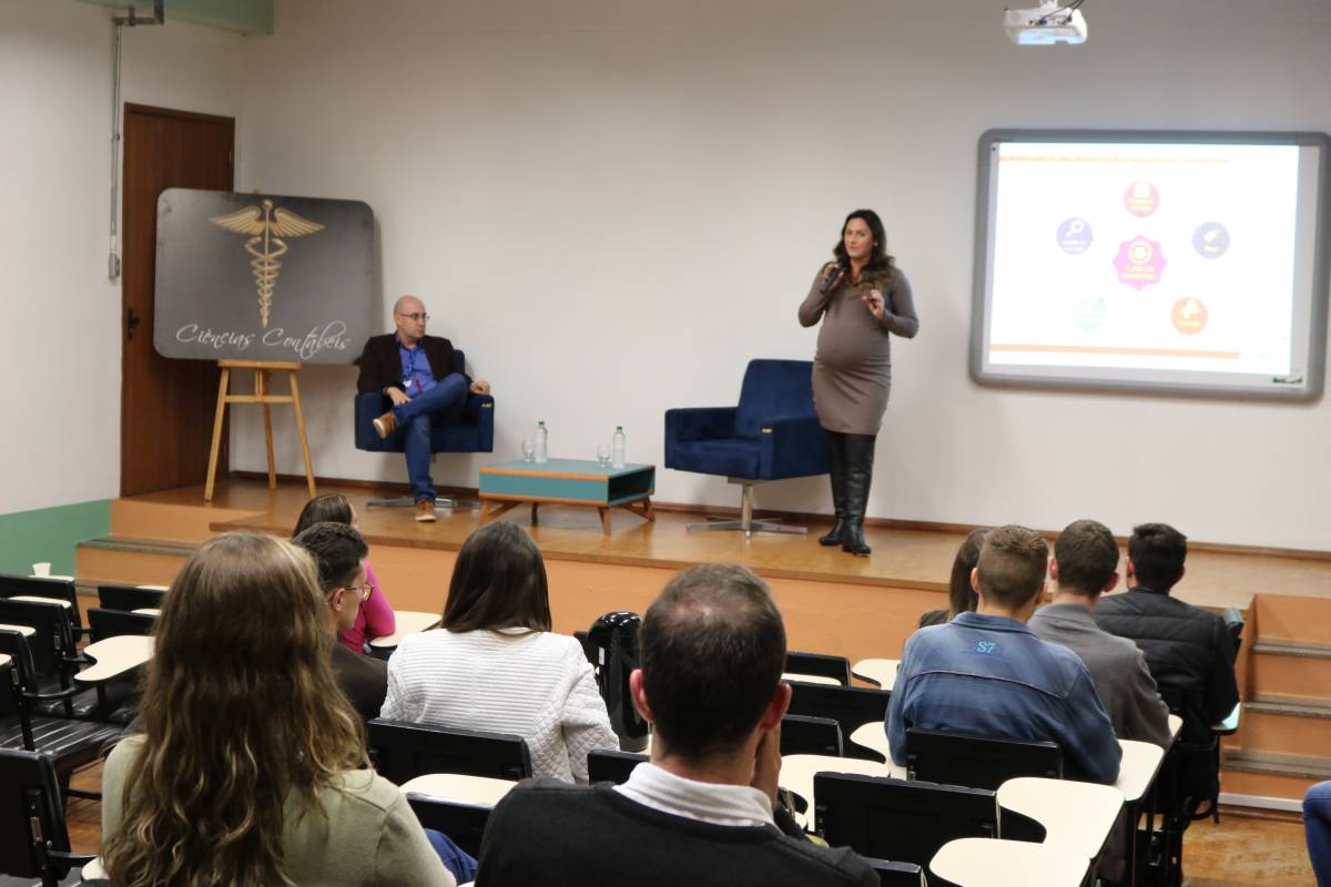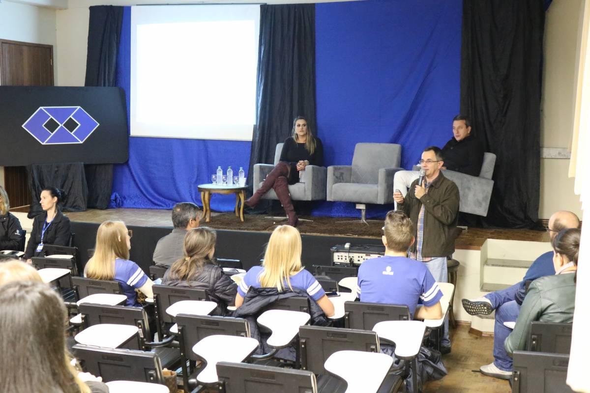 Já o curso de Administração contou com os painelistas: Anderson Mantei, Presidente da FUMSSAR, e Carina Lenz Rigo, Proprietária da Gioia Pizzaria, que debateram sobre “Os Desafios da Trajetória Empreendedora”. A mediação dos trabalhos foi feita pelo professor Martin Ledermann.