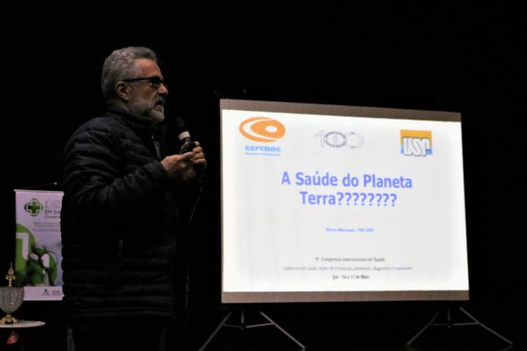 Para a atividade de início do Congresso, o público presente assistiu a uma exposição do tema “Saúde Planetária: Promoção e Desenvolvimento Sustentável”, com o Dr. Marco Akerman, da Faculdade de Saúde Pública da Universidade de São Paulo – USP (São Paulo/SP).