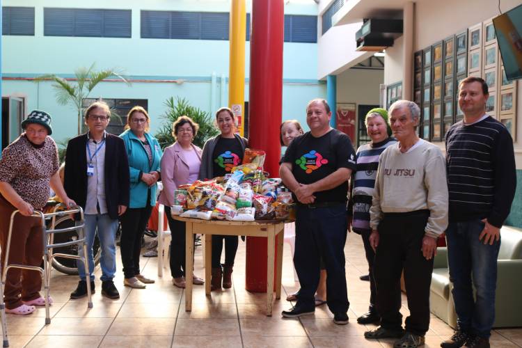 Na tarde de quarta-feira (15) estudantes do curso de Gestão de Cooperativas e o Coordenador do Programa Integrado de Formação de Gestores, professor Ariosto Sparemberger, realizam a entrega dos donativos para o Lar do Idoso, em Santa Rosa.