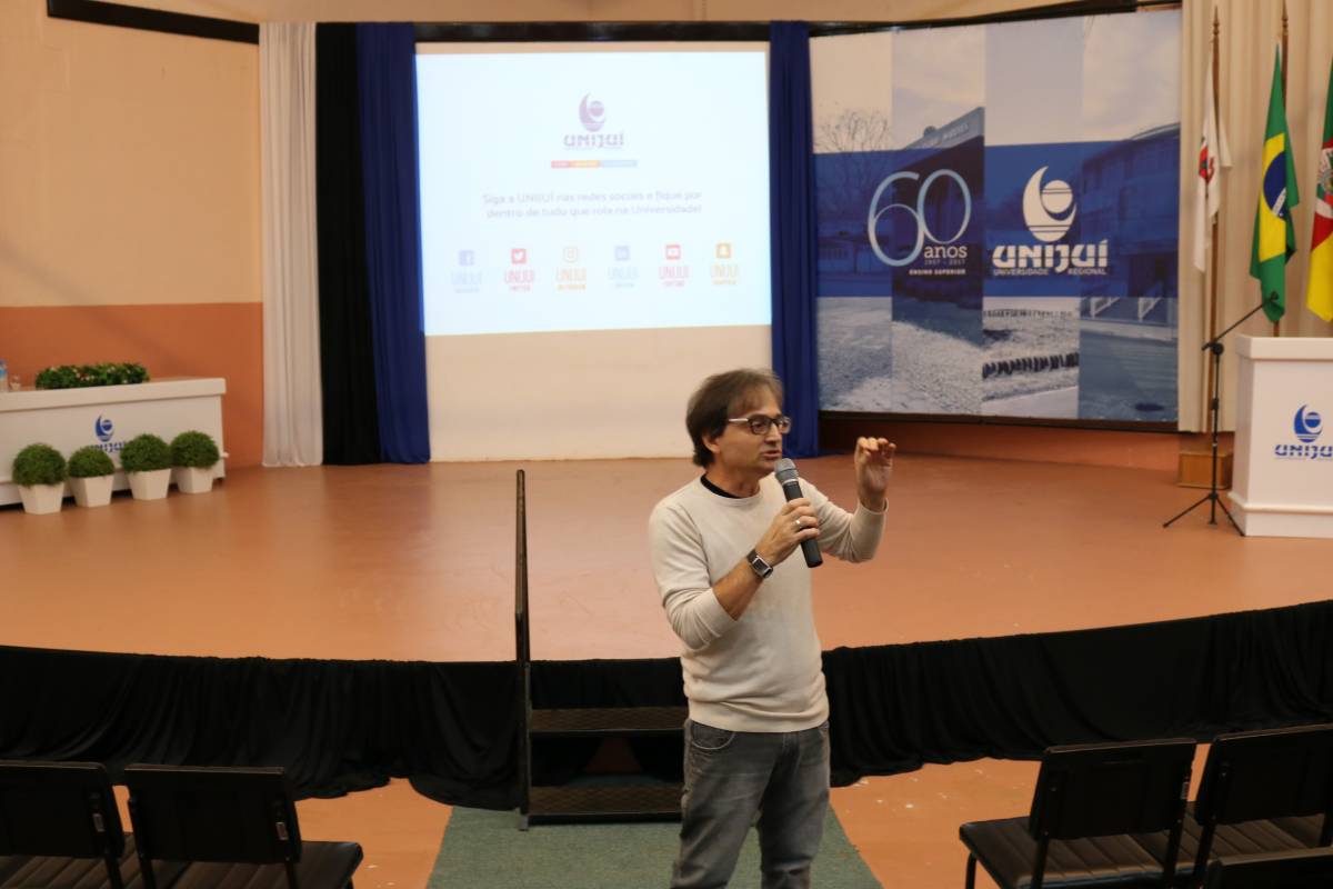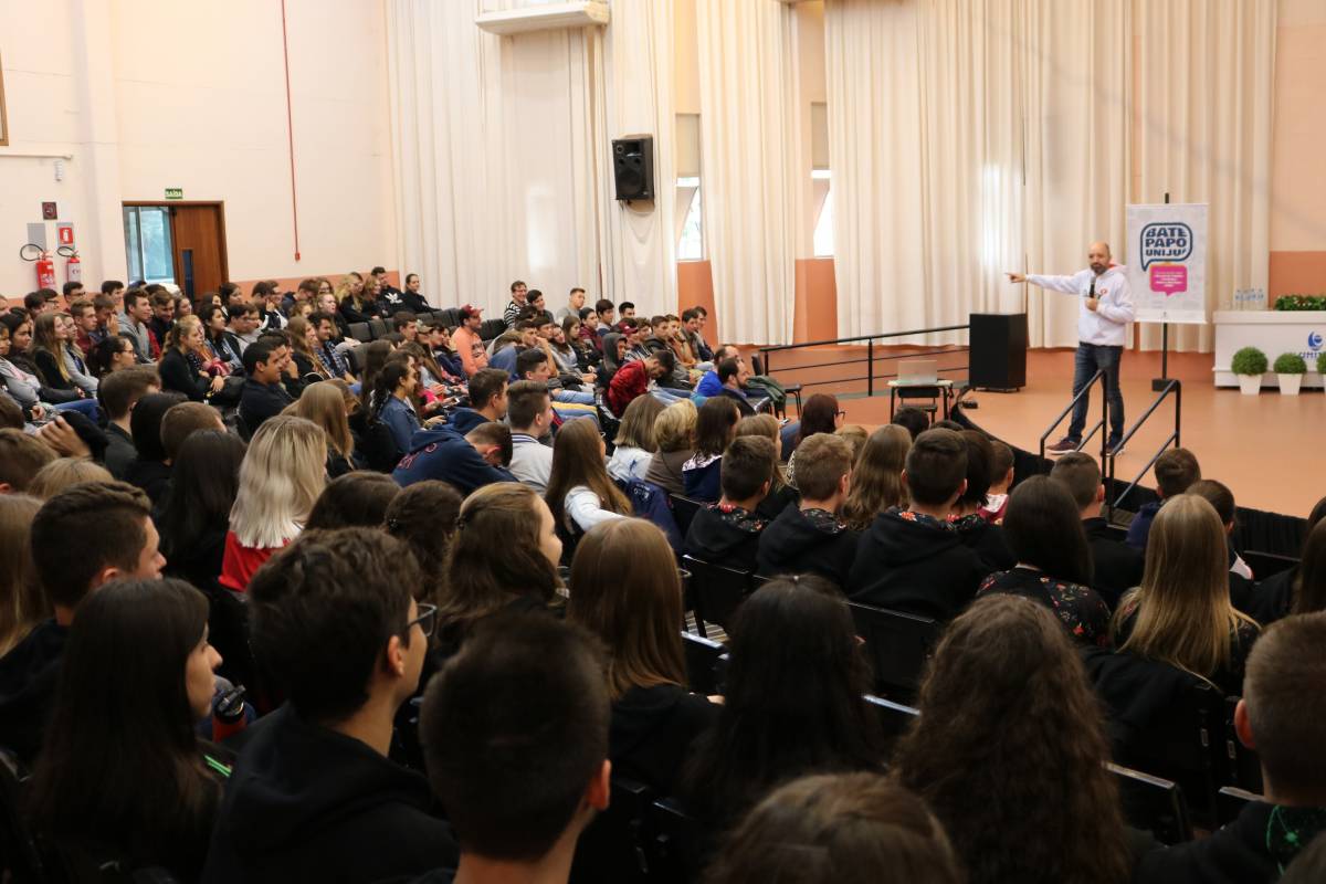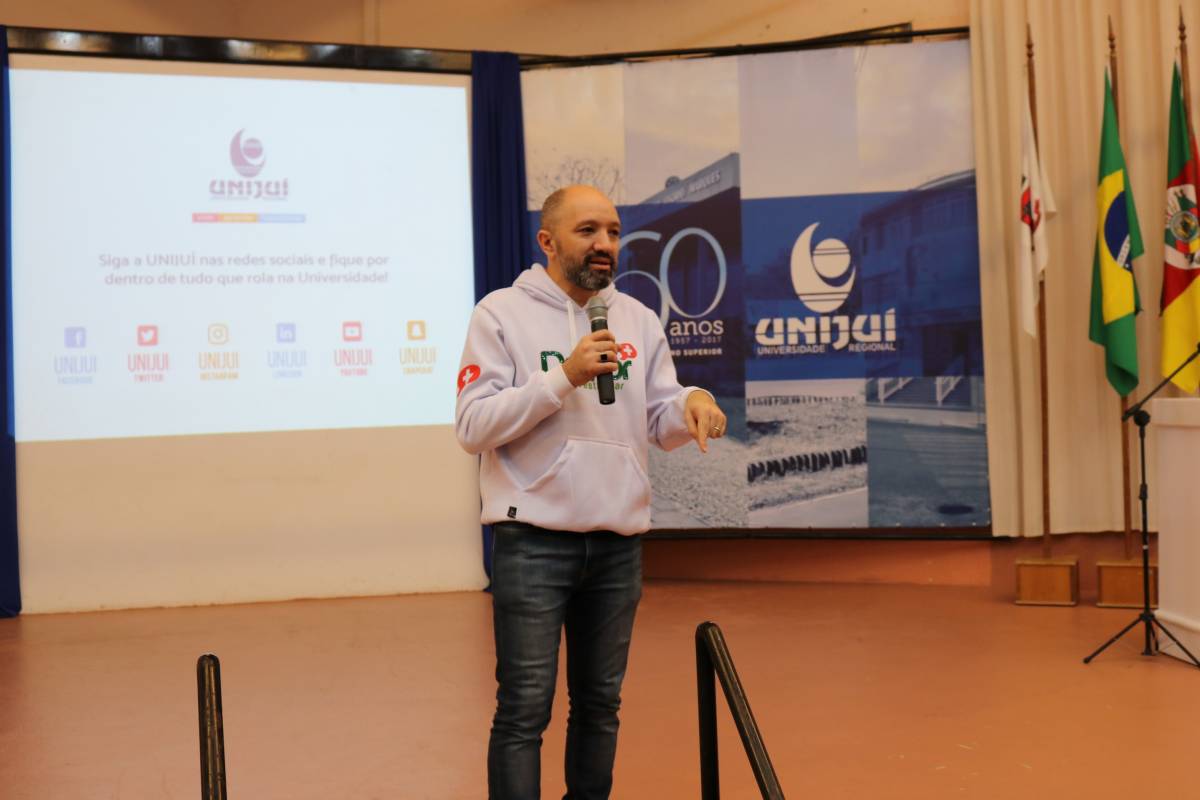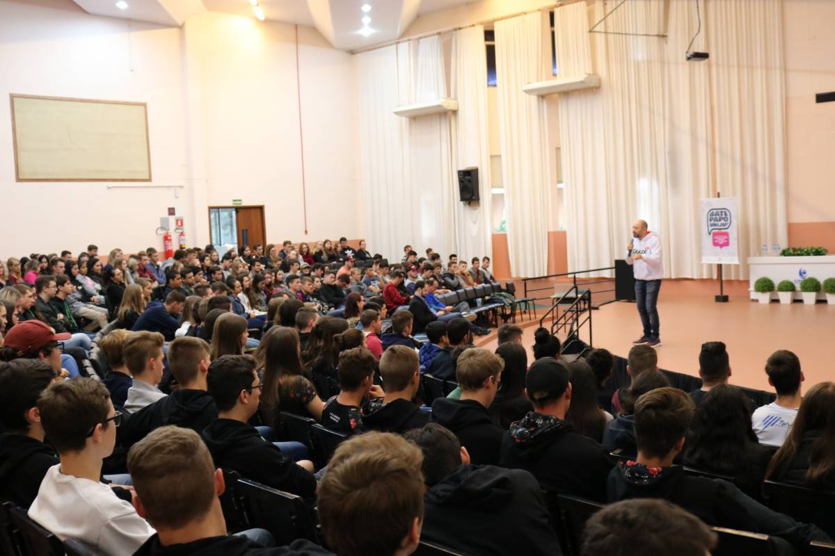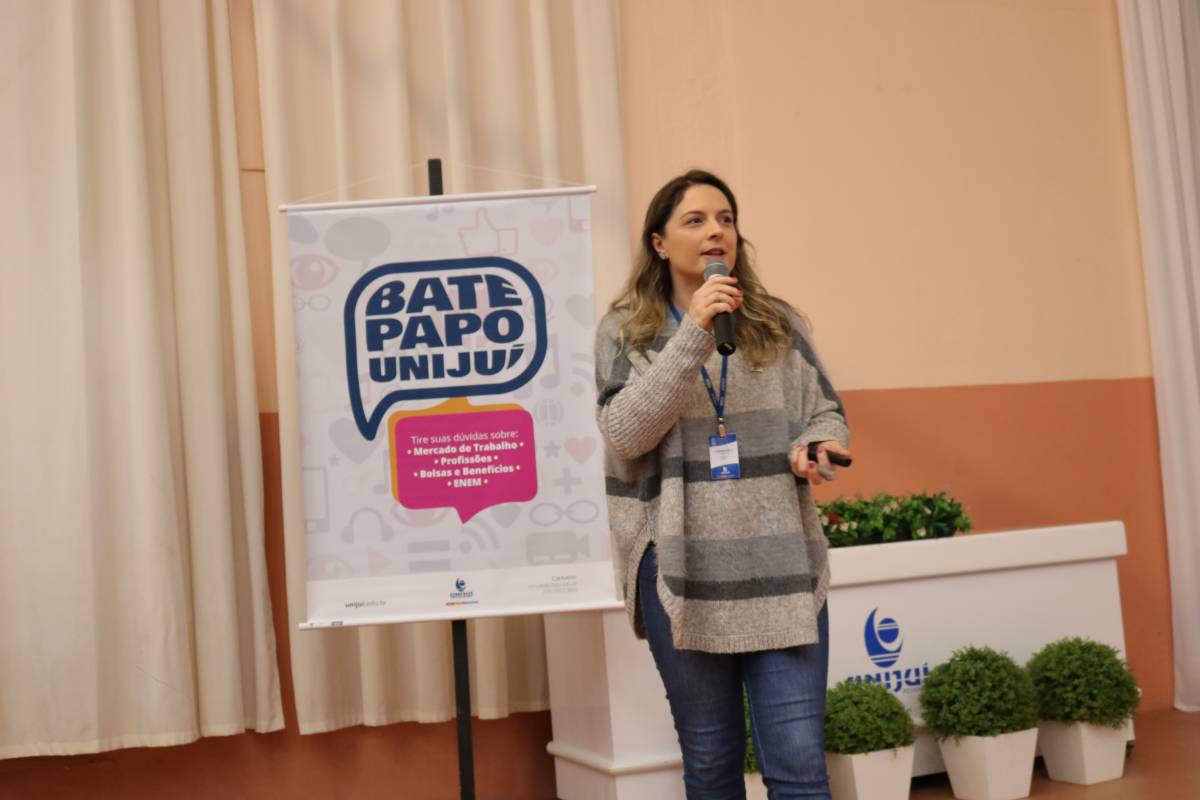 Uma conversa descontraída e instigante fez com que alunos do ensino médio lotassem o auditório central da Unijuí em Santa Rosa nesta terça-feira (21). Os participantes puderam agregar conhecimentos com as temáticas envolvendo “Escolha Profissional e Mercado de Trabalho”.