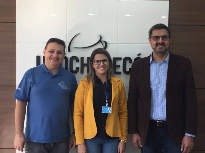Vice-Reitor Fernando Jaime González com James Antonio Antonini e Grazieli Maria da Rocha, da Assessoria de Assuntos Estudantis da Unochapecó.