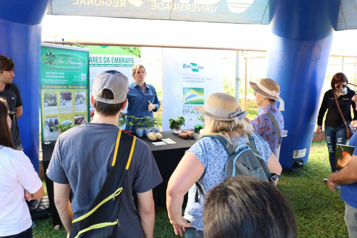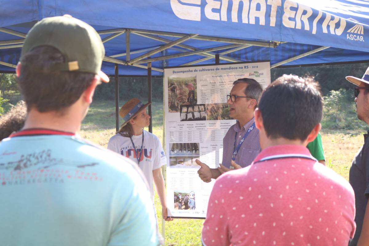 Com o objetivo de mostrar tecnologias relacionadas ao cultivo da batata-doce e da mandioca, o Instituto Regional de Desenvolvimento Rural (IRDeR) da Unijuí recebeu, nesta terça-feira, 18, Dia de Campo. O encontro objetivou o estudo das hortaliças, abrangendo a produção de mudas, cultivo e aproveitamento na alimentação, sistemas de manejo, processamento e agroindustrialização. Participaram do evento produtores rurais, profissionais que atuam na área, estudantes de graduação e também o público em geral, totalizando cerca de 100 pessoas de diferentes municípios da região.