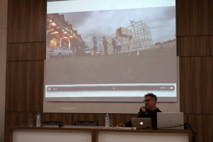 Na noite de quarta-feira, os estudantes dos cursos de Arquitetura e Urbanismo e Design tiveram a oportunidade de conversar com o profissional sobre o Projeto “Tocomadera”, que é desenvolvido pela Universidade Nacional de Córdoba, do qual é coordenador. Trata-se de um projeto de intervenção urbana de sucesso na Argentina e que, neste ano, será editado em Ijuí, tendo como temática a imigração, em razão da ExpoIjuí/Fenadi. “Sempre nos relacionamos corporalmente com os objetos mobiliários. Portanto, é necessário pensar e projetar novas relações com os espaços e com estes mobiliários. Este é um dos objetivos do projeto”, disse na oportunidade.