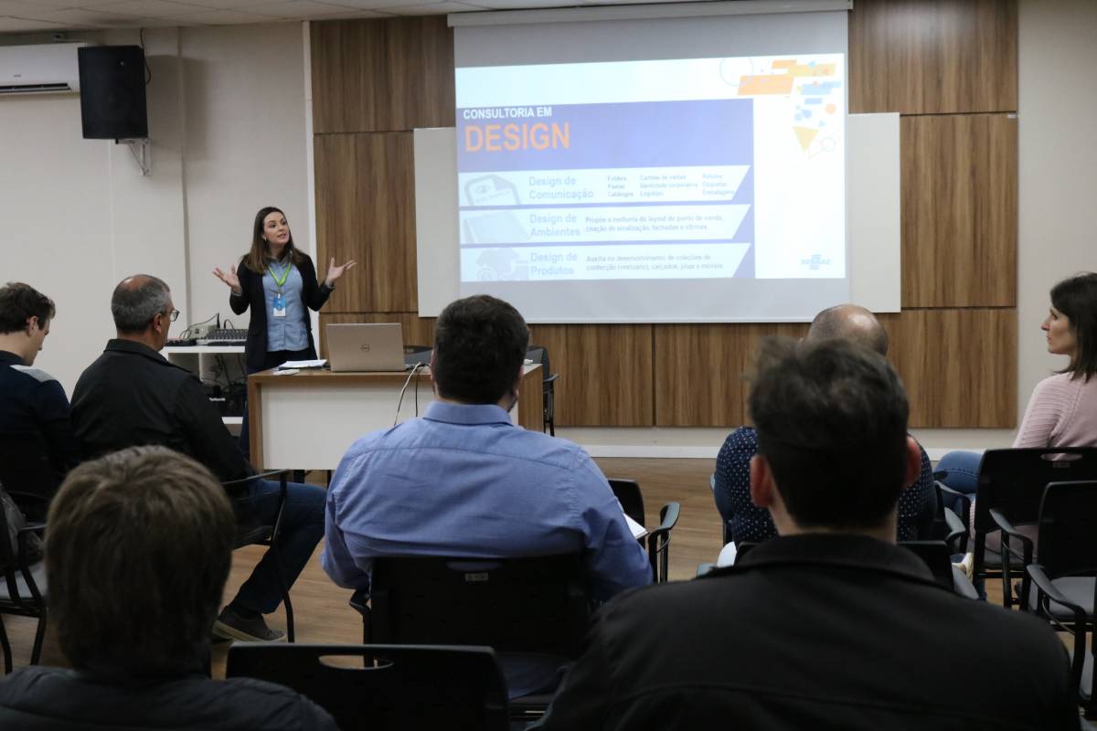 A Consultora da Regional Noroeste do Sebrae, Marilia Dorneles Rigodanzo, apresentou as diretrizes do Sebraetec, que tem o objetivo de aumentar a competitividade de micro e pequenas empresas por meio da inovação e tecnologia, visando a redução de desperdícios, o aumento da produtividade, a segurança dos empresários e a adequação de produtos para competir no mercado interno e externo.
