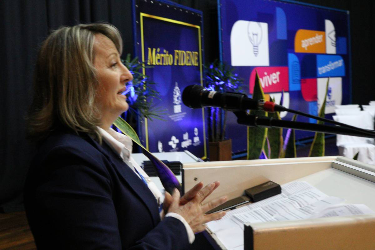 Para a Reitora da Unijuí e presidente da Fidene, Cátia Maria Nehring, que realizou o pronunciamento final, o Mérito Fidene é um momento de reconhecimento e agradecimento pelo trabalho desenvolvido na Instituição. “Esse é um momento de muita emoção. Neste ato formalizamos esse desejo de reconhecer o empenho e a dedicação de nossos técnicos-administrativos e docentes, pessoas que nessas décadas construíram a sua história sendo protagonistas de muitas ações regionais. Uma grande instituição só se faz com grandes pessoas, que possuem um propósito em comum. Somente pela educação podemos fazer novas revoluções e transformações”, salientou.