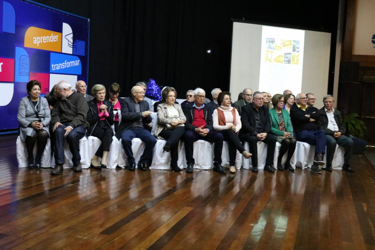 Nelite Monteiro, técnica-administrativa com mais tempo de casa, com 43 anos de atuação, fez um pronunciamento em nome da categoria. “Tive muitos desafios e aprendi com todos com quem convivi. Me sinto realizada e tenho muito orgulho e gratidão pela Fidene”. Em seguida a professora Eronita Silva Barcelos, docente com mais tempo de atuação, contando com 54 anos na Universidade, também realizou um pronunciamento. “O meu sentimento é de gratidão pela trajetória coletiva percorrida durante todos esses anos. Tenho orgulho de pertencer a essa comunidade institucional e satisfação de ter contribuído com essa caminhada. Todos aprendemos juntos e crescemos com muito esforço. Recebam a nossa história como herança”, complementou.