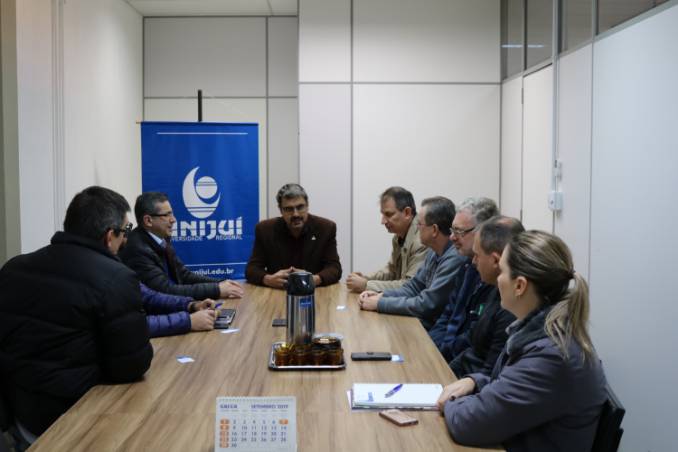 O Vice-Reitor de Pós-Graduação, Pesquisa e Extensão, Fernando Jaime González, na oportunidade Reitor em exercício, recebeu a comitiva. Também participaram da reunião o chefe do Departamento de Estudos Agrários (DEAg), Osorio Lucchese, a coordenadora do curso de Agronomia, Cleusa Bianchi e o coordenador do Mestrado em Sistemas Ambientais e Sustentabilidade, José Antônio Gonzales.