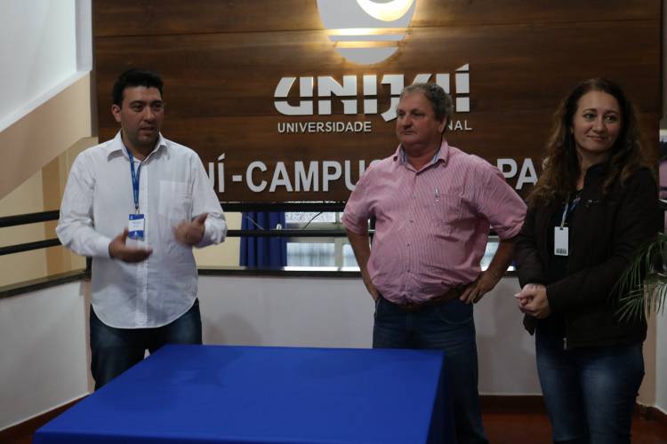 No ato de assinatura estiveram presentes os diretores do campus Três Passos, Emerson Ronei da Cruz e Sandra Otonelli, o secretário de Indústria e Comércio e de Meio Ambiente de Três Passos, Diego Maciel, o gerente da Agência de Inovação e Tecnologia da Unijuí (Agit), Maiquel Kelm, a consultora de negócios Leonice Parnoff, o empreendedor Dirceu José Diel, o presidente da Câmara de Vereadores, Vinícius Araújo, o presidente da Câmara de Comércio, Indústria e Serviços, Alisson Muller e a coordenadora do curso de Direito do campus Três Passos, Márcia Cristina de Oliveira.