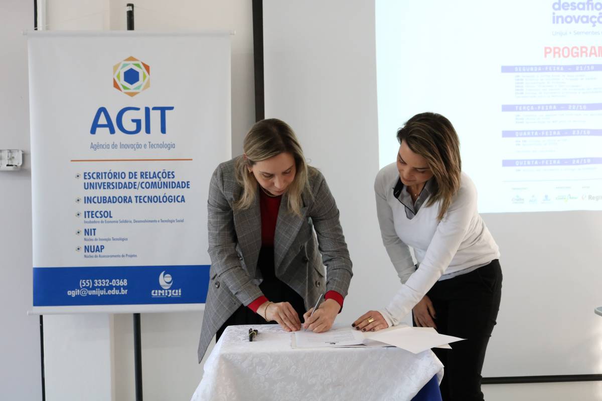 Ao final do evento, para marcar o lançamento oficial, a Vice-Reitora e a diretora da Sementes Costa Beber assinaram o regulamento do "Desafio de Inovação Unijuí Sementes Costa Beber". O mesmo está disponível na página do evento, no Portal da Unijuí.