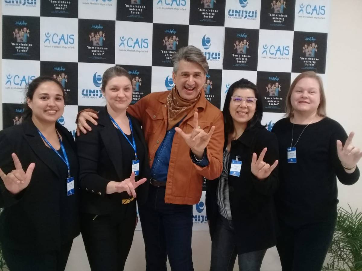 Em razão da Semana Nacional da Pessoa com Deficiência Intelectual e Múltipla (21 a 28 de agosto), a Unijuí, por meio do Núcleo de Acompanhamento e Acessibilidade Institucional – NAAI, apoiou a promoção de eventos sobre a inclusão de pessoas com deficiência em Ijuí, organizados em parceria com o Centro de Atendimento Integral ao Surdo (CAIS). De 30 de agosto a 1º de setembro foi realizado o Workshop “Bem-vindo ao universo surdo”, na Escola Ruizinho. O curso foi ministrado por Marco Arriens, intérprete internacional. Cerca de 50 participantes de diversas cidades do Estado se fizeram presentes no evento, que contou também como formação para a equipe de TILS (Tradutores Intérpretes de Língua de Sinais) da Unijuí. No decorrer do fim de semana, o palestrante abordou a temática surda, com conteúdo teórico e prático, contribuindo de forma significativa para a formação dos profissionais da área.