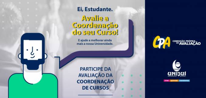 Até esta sexta-feira, 06 de setembro, os estudantes dos cursos de graduação da Unijuí podem participar do processo de avaliação da Coordenação do seu próprio curso, uma novidade que foi incorporada ao Programa de Avaliação Docente da Unijuí. Os dados e relatórios serão disponibilizados aos gestores a partir do dia 10 de setembro.