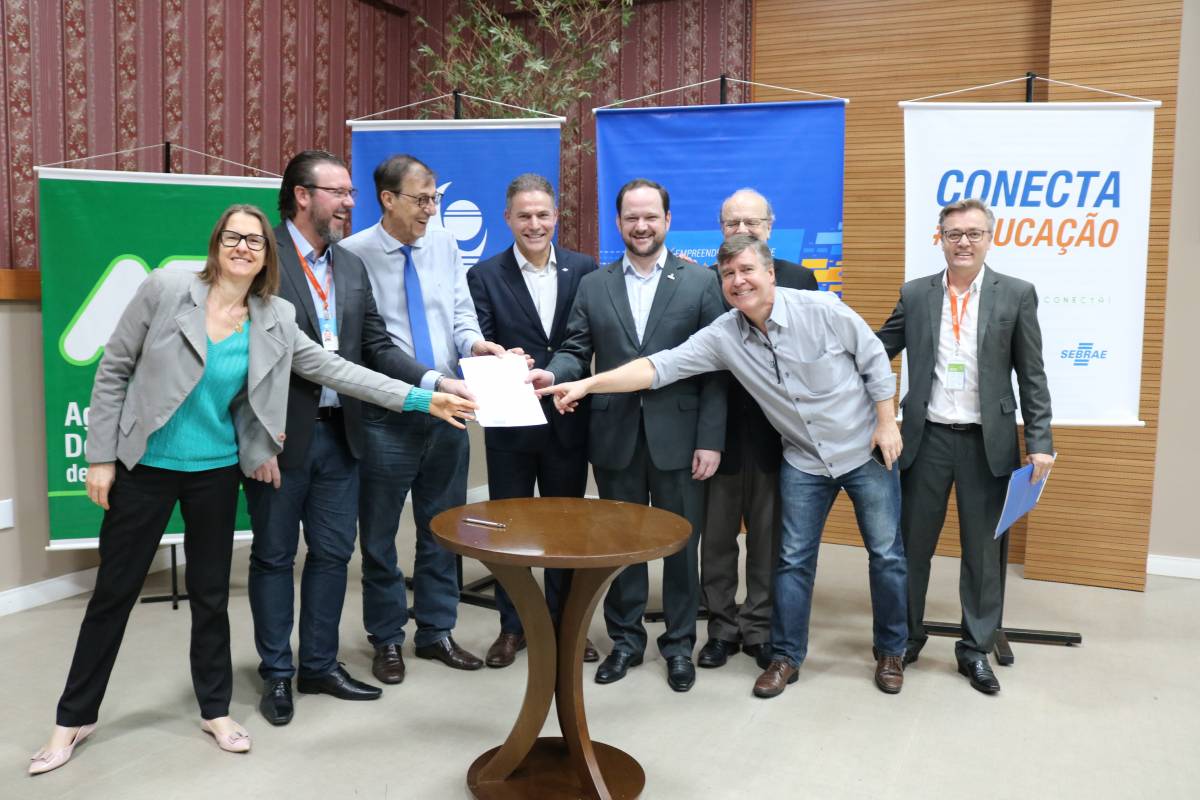 Na manhã desta terça-feira, dia 10, no Hotel Imigrantes em Santa Rosa, ocorreu mais um importante passo do Programa Conecta Educação: a integração do Sebrae como parceiro nas atividades. O objetivo dessa parceria é promover a expansão do Programa, trabalhando competências tecnológicas em sala de aula, atribuições sociais e emocionais, além do empreendedorismo para toda a rede de ensino de Santa Rosa.