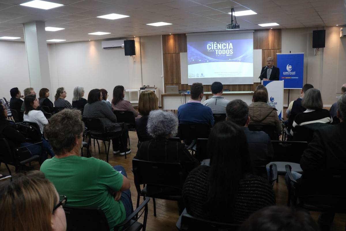 Para mostrar as atividades que serão desenvolvidas, a Unijuí convidou representantes de secretarias da educação de toda a região, além de professores que atuam em redes municipais e na rede estadual de ensino. O Vice-Reitor de Pós-Graduação, Pesquisa e Extensão da Unijuí, professor Fernando Jaime González, observou que é por meio da pesquisa que os estudantes fortalecem a capacidade de análise crítica, aliando a prática cotidiana aos conhecimentos adquiridos na formação, ampliando as habilidades e proporcionando um universo de oportunidades. “Foi com base nesse pensamento de busca incessante pela inovação, que nasceu o Projeto. Voltado para a popularização da ciência por meio dos diferentes projetos, a proposta se apresenta como uma ação aberta para toda a comunidade, proporcionando um espaço de interação para alunos do ensino básico, fundamental e médio com as diferentes áreas de conhecimento”, complementou.