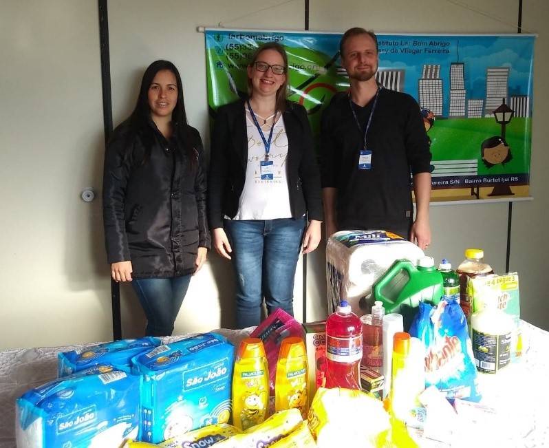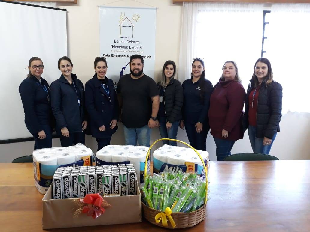Controladoria e RH: foi realizada ação junto ao Núcleo Social de Ijuí, mantido pelo Lar Henrique Liebich, que desenvolve oficinas pedagógicas no contra turno escolar. São atendidas cerca de 100 crianças oriundas de escolas públicas das comunidades carentes do entorno do Lar, localizado no Bairro Glória, em Ijuí. Foram doados itens de higiene e limpeza.