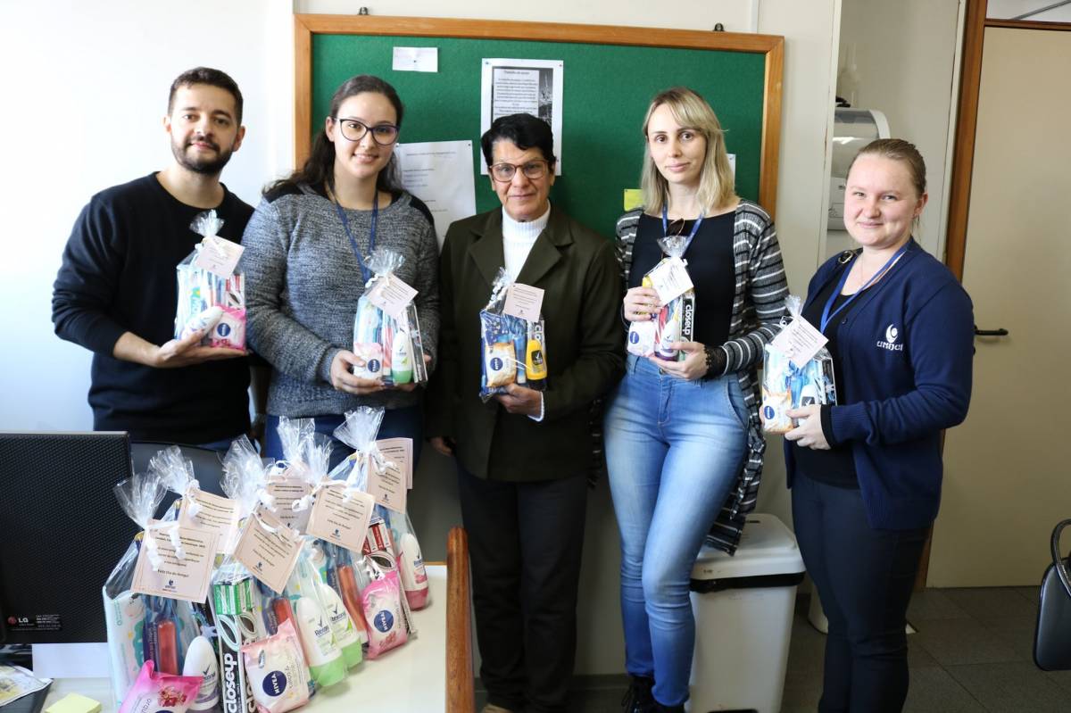 DACEC: foi feita a doação de 30 kits de materiais básicos de higiene para auxiliar pessoas que estão internadas no HCI/CACON - Ijuí, na ala do SUS, e que não têm condições de terem consigo itens de higiene durante o período da internação.