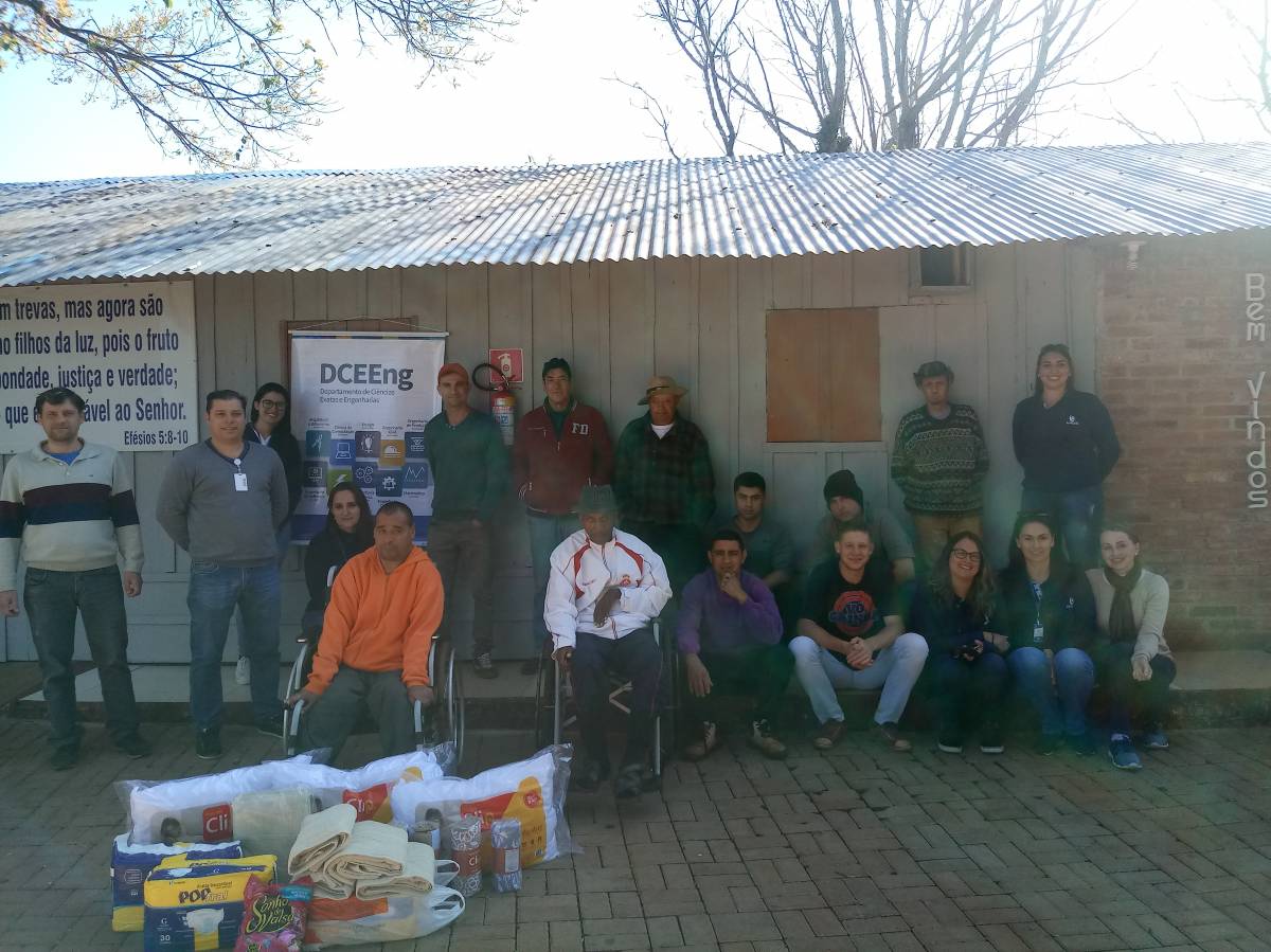 DCEEng: a instituição escolhida para a ação foi o Sítio de Acolhimento SOS Vida, localizado no município de Coronel Barros. O Sítio é de apoio a homens em situação de vulnerabilidade social, tem capacidade para acolher 20 pessoas e conta com uma estrutura formada por médico, psicólogo e assistente social. O sítio sobrevive apenas de doações, e qualquer doação é bem recebida. Os próprios internos realizam o trabalho de cuidado com o espaço e auxiliam nos cuidados com os demais internos. O DCEEng fez a doação de lençóis, fronhas, travesseiros, toalhas de banho e fraldas.
