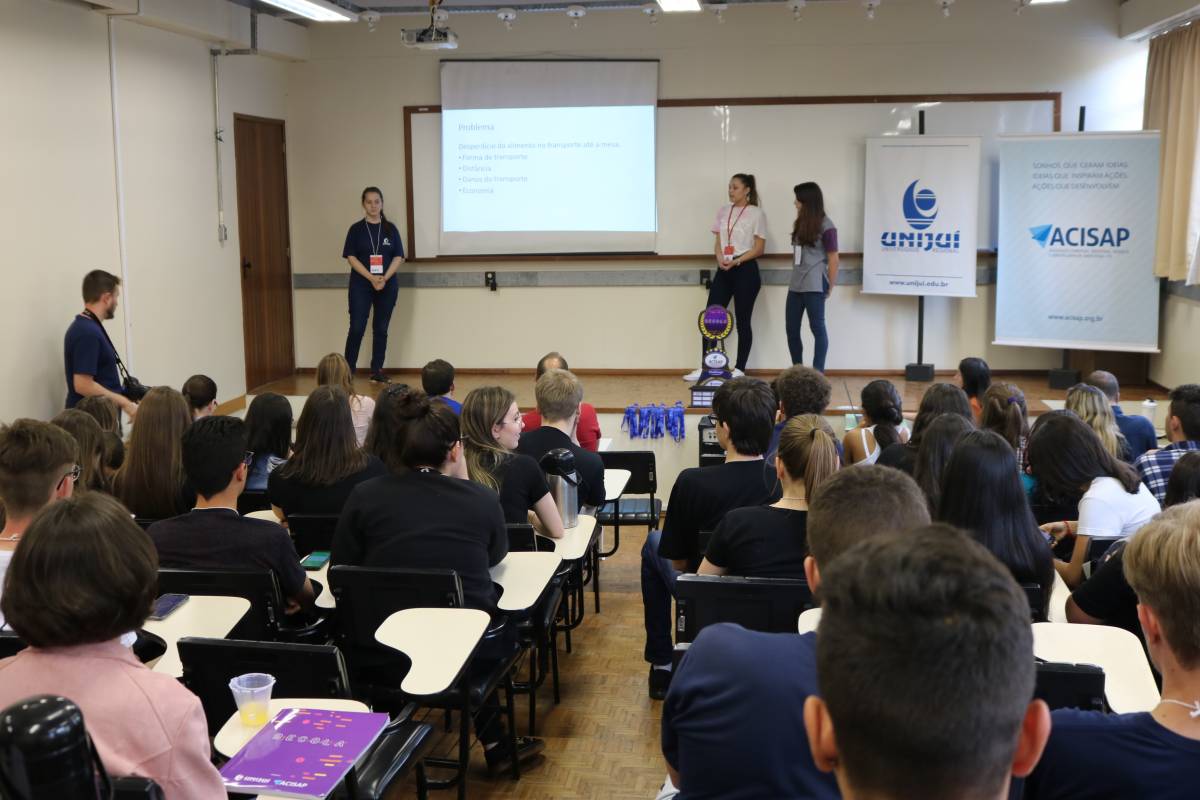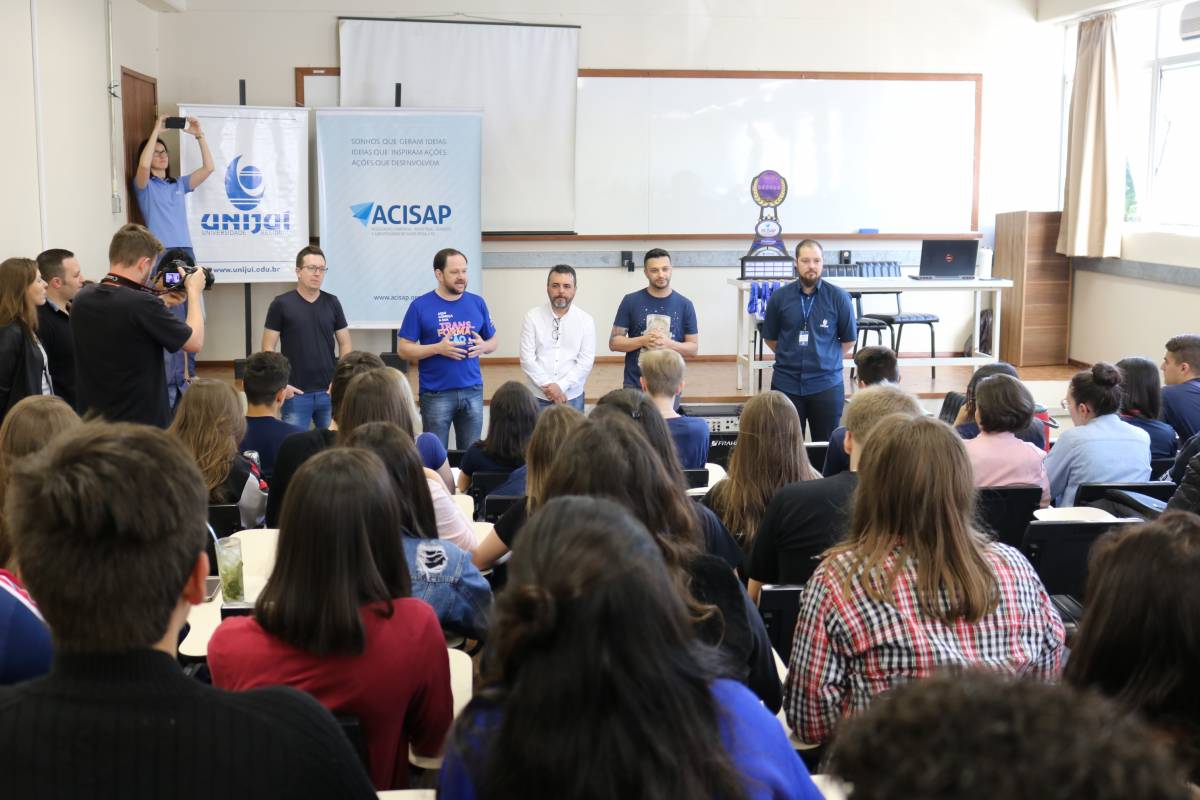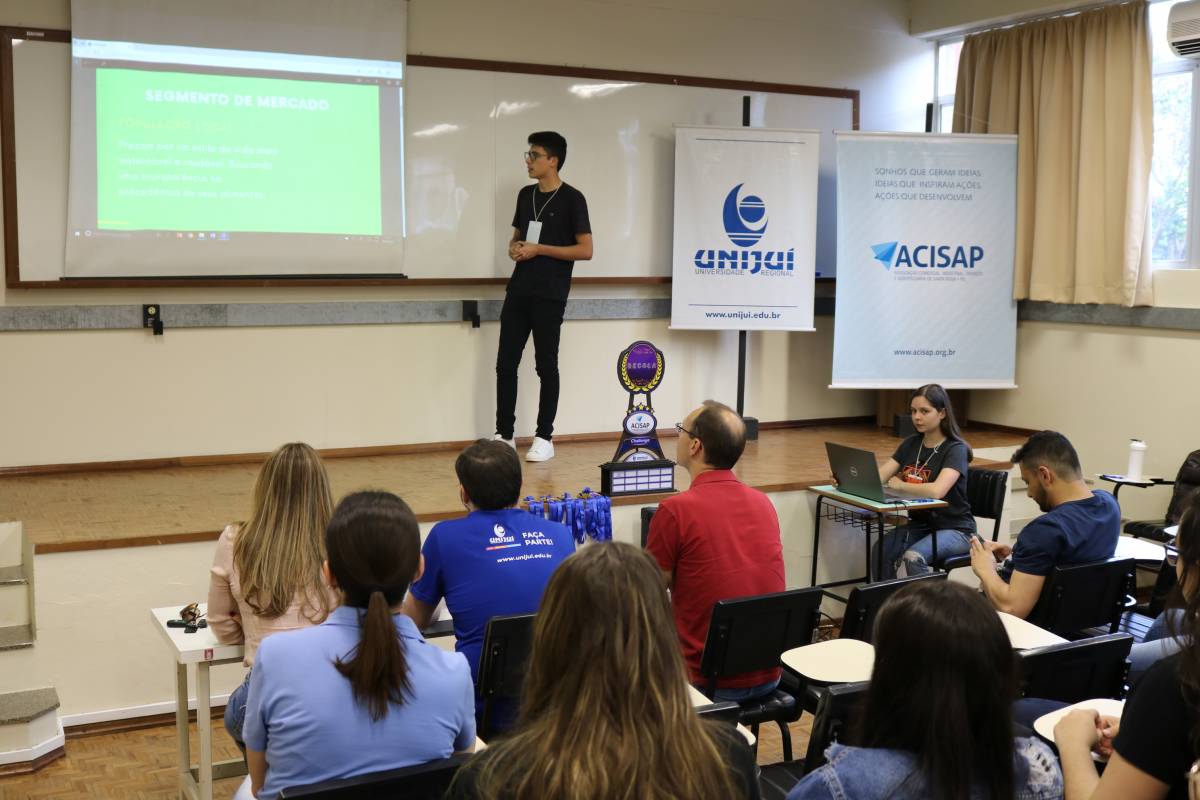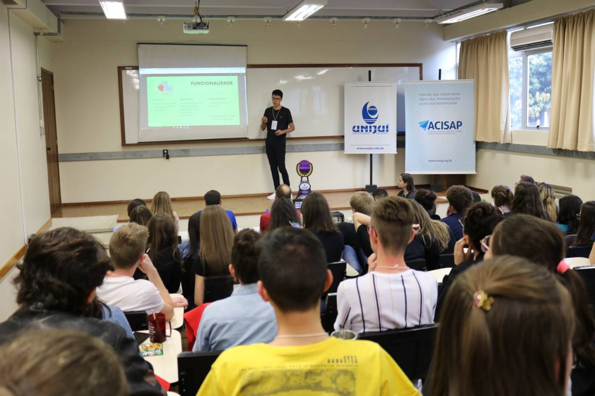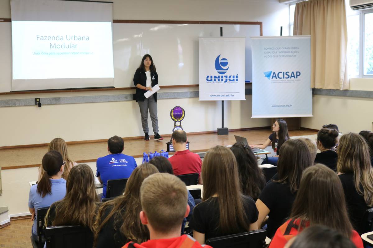 O sábado teve uma movimentação diferente no campus Santa Rosa, 80 estudantes de seis escolas do Ensino Médio da cidade realizaram o último encontro do Programa Decola, promovido pela Acisap em parceria com a Unijuí. O evento denominado “Challenge Day” encerrou as atividades do programa, no qual durante oito encontros os estudantes do segundo ano do Ensino Médio aprenderam e trabalharam com metodologias de empreendedorismo. O desafio proposto para cada escola envolveu problemas relacionados à temática da alimentação. Os estudantes tiveram que buscar a melhor solução e apresentar a ideia em um pitch para uma banca avaliadora.