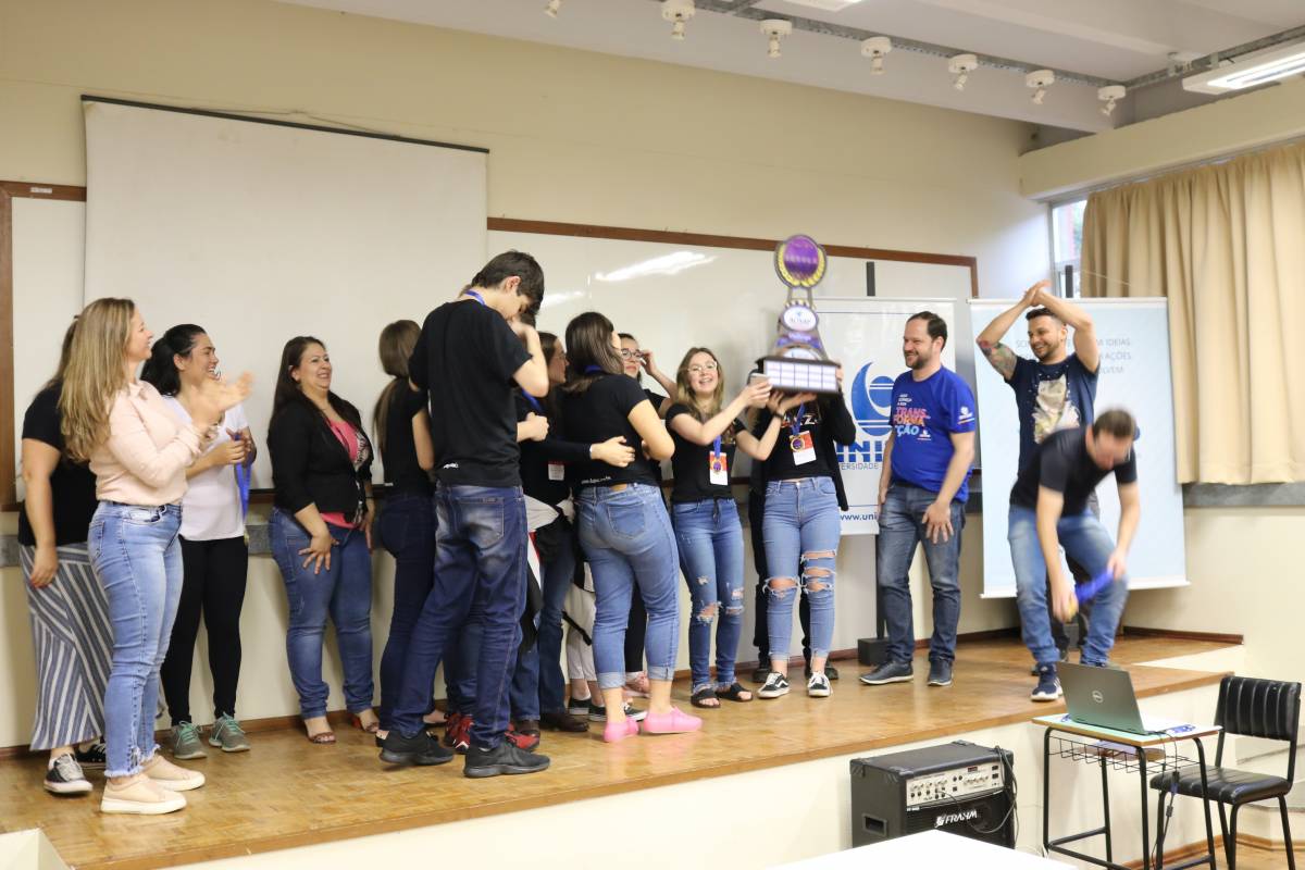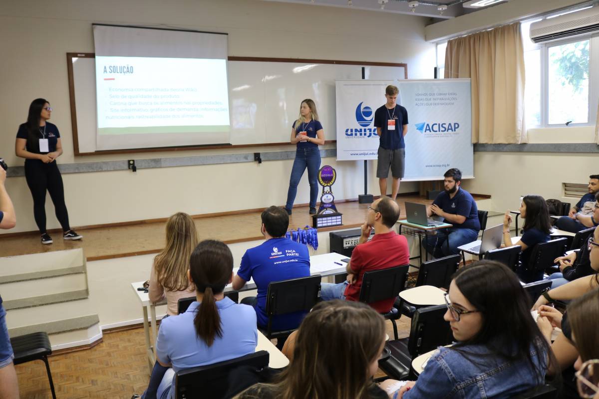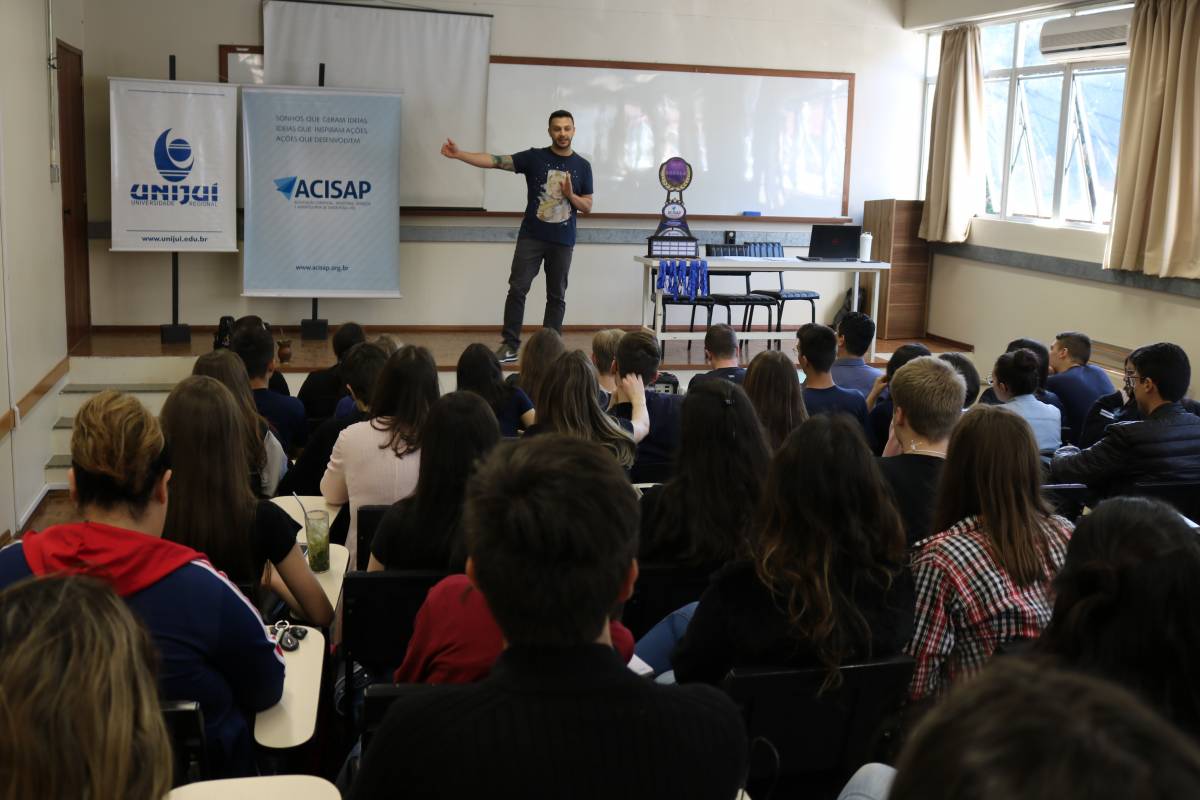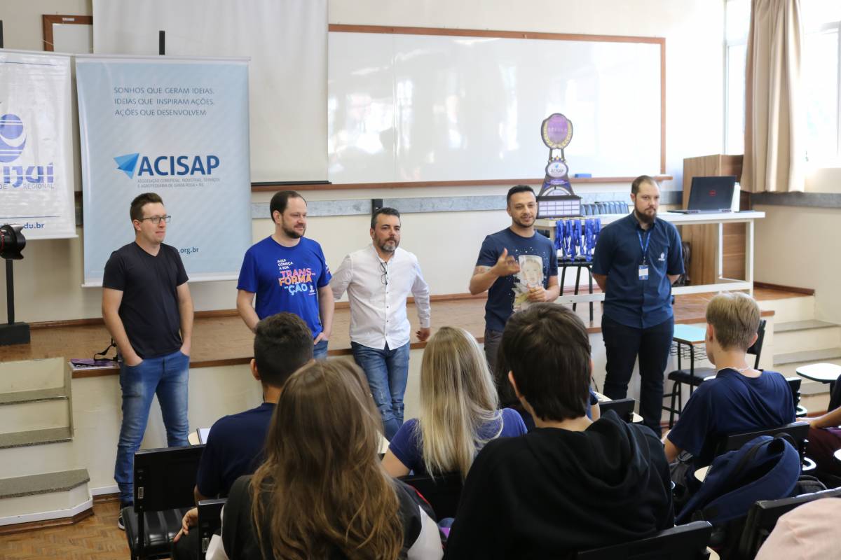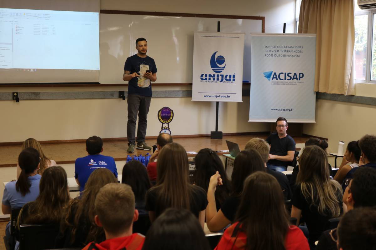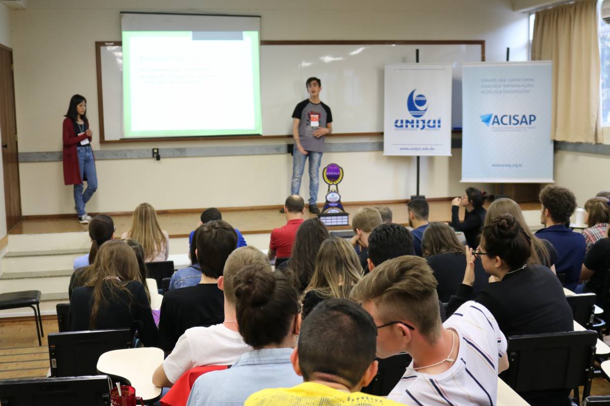 O sábado teve uma movimentação diferente no campus Santa Rosa, 80 estudantes de seis escolas do Ensino Médio da cidade realizaram o último encontro do Programa Decola, promovido pela Acisap em parceria com a Unijuí. O evento denominado “Challenge Day” encerrou as atividades do programa, no qual durante oito encontros os estudantes do segundo ano do Ensino Médio aprenderam e trabalharam com metodologias de empreendedorismo. O desafio proposto para cada escola envolveu problemas relacionados à temática da alimentação. Os estudantes tiveram que buscar a melhor solução e apresentar a ideia em um pitch para uma banca avaliadora.