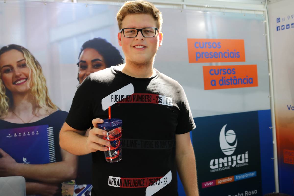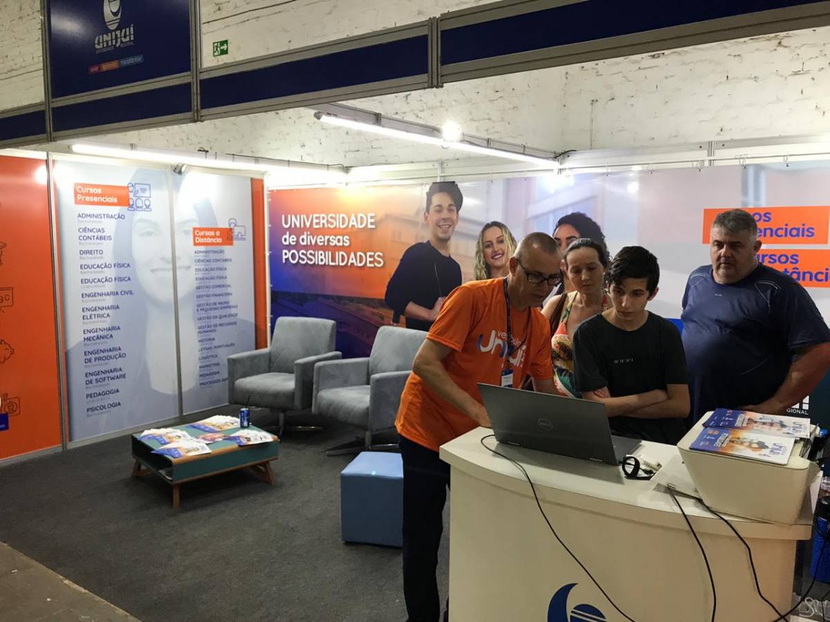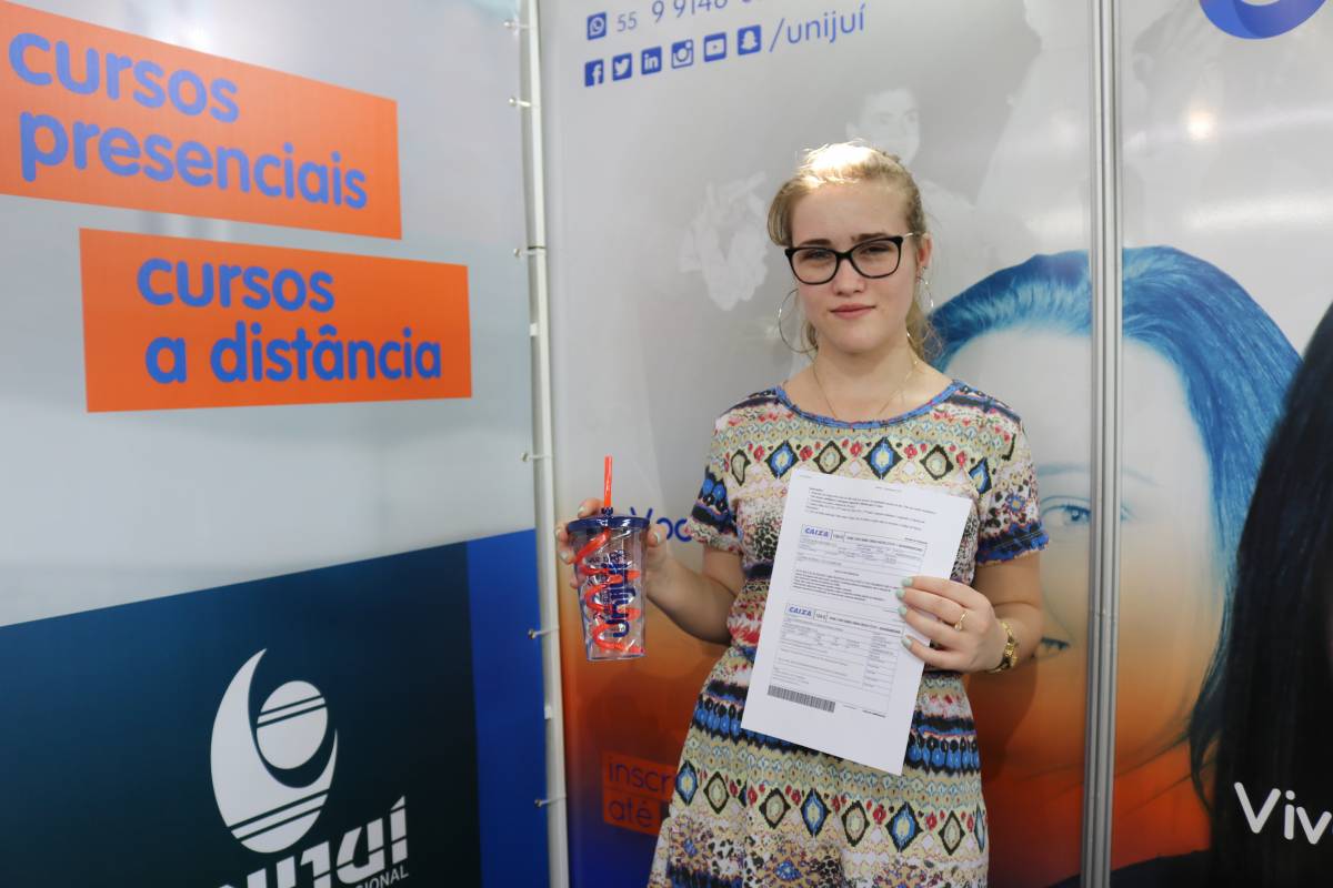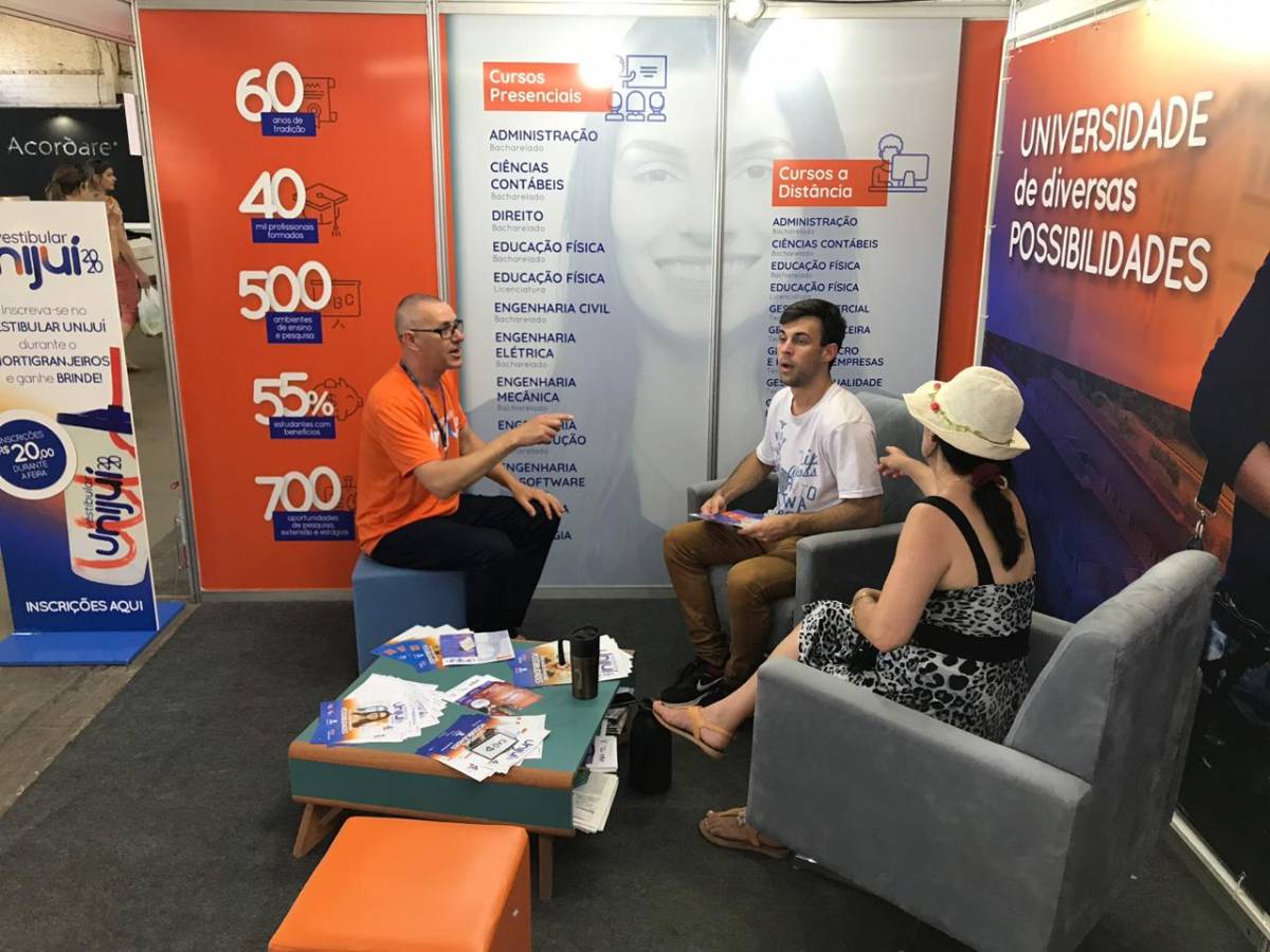A Unijuí realizou inscrições para o Vestibular 2020 no estande institucional, localizado no Pavilhão 1. Os estudantes que realizaram sua inscrição durante a Feira foram beneficiados com a taxa no valor de R$ 20 e receberam um copo personalizado. Durante os cinco dias de feira os cursos de Educação Física e Direito também participaram com ações voltadas aos projetos de extensão do Campus Santa Rosa.