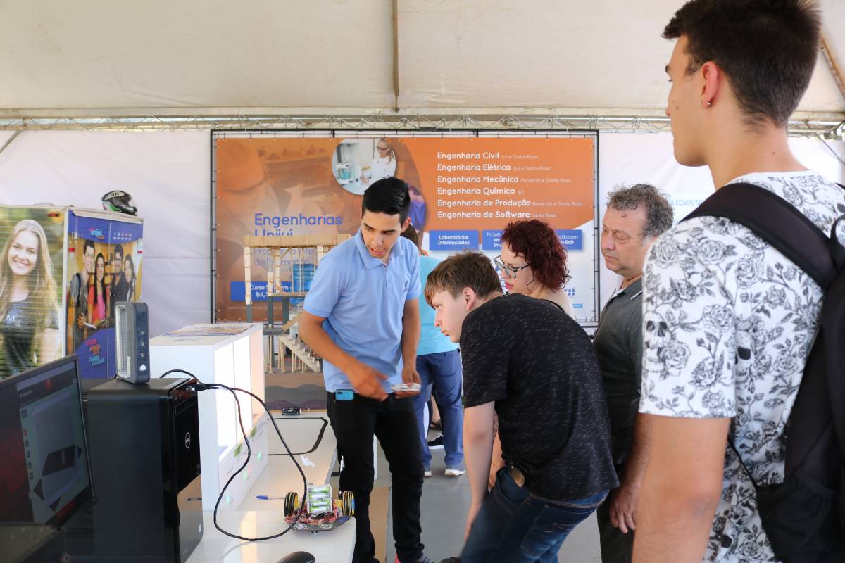 De acordo com o coordenador das Engenharias, professor Mauro Rodrigues, a pujança do campo está cada dia mais associada com a tecnologia. “Com o rito de mostrar algumas produções realizadas e tecnologias disponíveis no campus Santa Rosa, os cursos de engenharia da Unijuí realizaram uma mostra na área tecnológica da Feira, integrando ainda mais o campo e a cidade. A participação das engenharias no evento foi fundamental para a divulgação da formação integrada em engenharia que a Unijuí oferece, permitindo que a comunidade tenha acesso a cursos de excelente qualidade a preços compatíveis com nossa realidade regional”, enfatizou o professor.