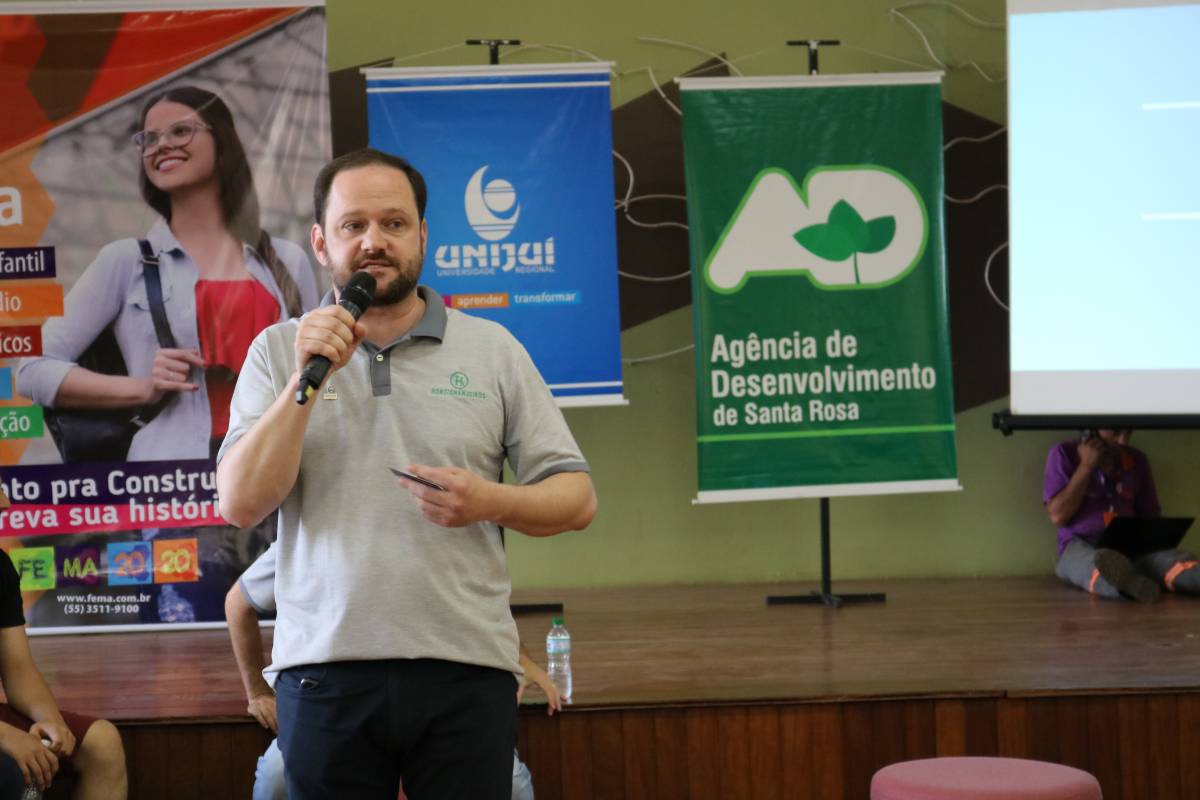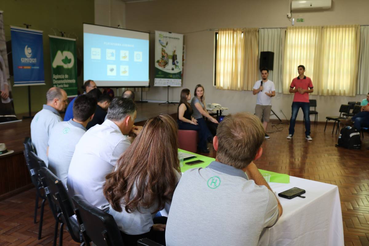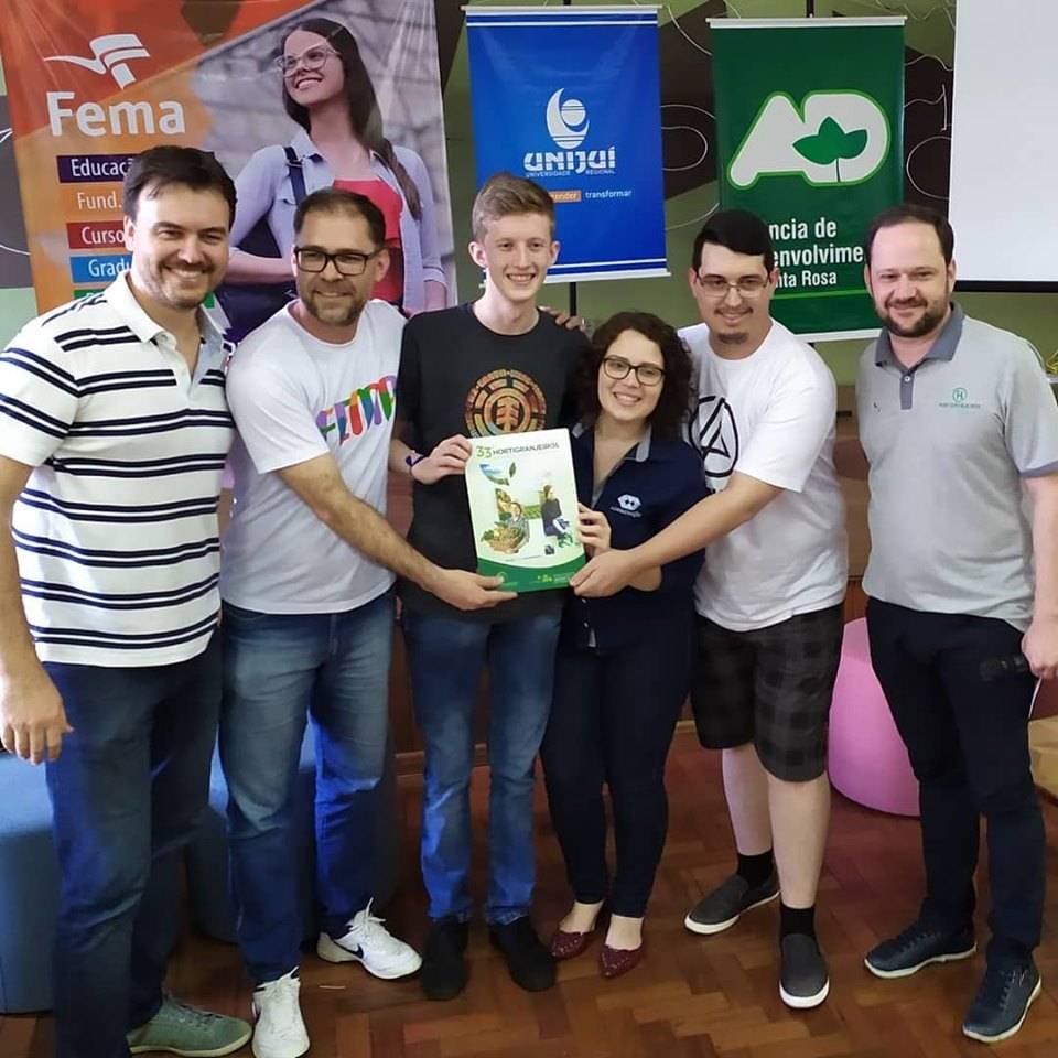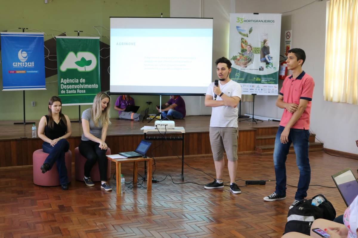 A maratona de desafios do Hackathon da Horti teve como patrocinadora a Universidade. Com o objetivo de criar e propor soluções para desafios como a agregação de valor aos produtores, diversificação de cultura e facilidade de acesso e logística rural, participaram doze equipes e mais de 40 competidores na maratona organizada pela Agência de Desenvolvimento de Santa Rosa. Na oportunidade, 10 equipes chegaram à etapa final de avaliação da banca dos projetos.