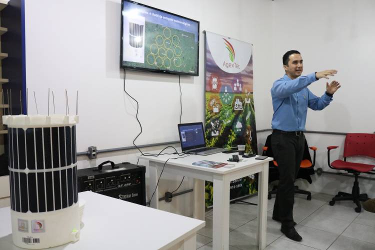 Além disso, as empresas incubadas realizam, na Feira, lançamentos de novas tecnologias, como aplicativos e produtos que vem para facilitar a vida das pessoas e gerar inovação ao mercado regional. Dentre os novos produtos apresentados para a comunidade está uma Estação Meteorológica, desenvolvida pela startup do agronegócio AgexTec, em evento que ocorreu na noite desta terça-feira, dia 15 de outubro, na Casa da Unijuí. Segundo o sócio-diretor da empresa, Dr. Cesar Fensterseifer, a grande maioria dos municípios gaúchos não possui uma estação meteorológica e este produto vem para ajudar a melhorar este tipo de monitoramento aos produtores rurais. “Procuramos apresentar uma forma acessível de o produtor ter informações importantes e poder checar elas em tempo real, como temperatura do ar, umidade relativa, entre outros dados”, observa.