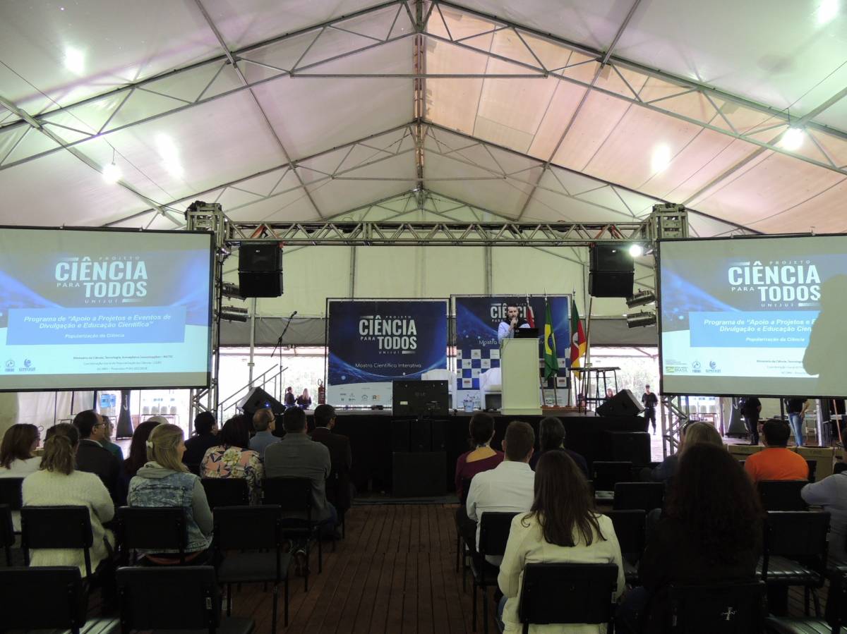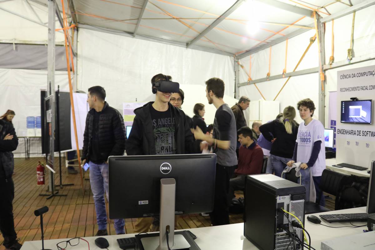 Uma tenda, montada especialmente para o evento, foi o grande palco das mostras que envolveram diversos projetos da Universidade: Meninas Digitais, Feira de Matemática, Física para Todos, MoEduCiTec e Tech Day. Dentre as ações programadas, o público conferiu experiências robóticas, jogos de realidade virtual, um passeio em todo o sistema solar, por meio de um cinema 3D, entre outras importantes atividades. As escolas também foram protagonistas em mostras de trabalhos da MoEduCiTec e da Feira de Matemática, socializando entre si a produção científica escolar. Quem não conseguiu participar, terá outras oportunidades, já que todos os projetos envolvidos no Ciência para Todos são desenvolvidos nas ações de extensão da Universidade e já possuem atividades consolidadas na comunidade regional.