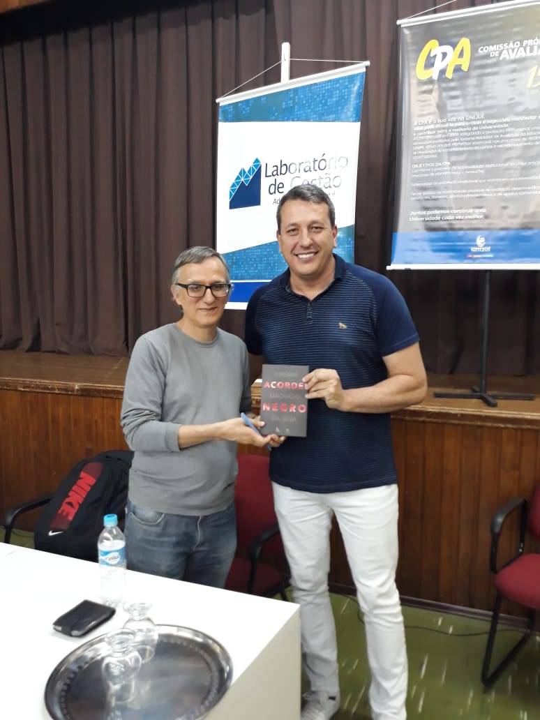 Nesta quinta-feira, dia 24, o Salão do Conhecimento 2019 chegou ao seu último dia de atividades. Um dos destaques da programação foi a palestra do professor, escritor e jornalista Juremir Machado da Silva, realizada no auditório do campus Três Passos, que abordou o tema “A atualidade dos conceitos de cidadania, democracia e direitos”. Recentemente Juremir lançou o livro "Acordei Negro". Esta obra, segundo a editora Sulina: "gira ao redor de um narrador complexo, que ora mistifica os indivíduos negros, ora os adula, em um duelo simbólico em que méritos íntimos e vergonhas históricas se misturam. Acordei negro trata-se aqui do uso eficiente do exíguo lugar de fala de um homem branco que, com profunda consciência de sua responsabilidade na construção das desigualdades sociais, resolve medir as limitações que o racismo impõe à sua própria maneira de ver o mundo".