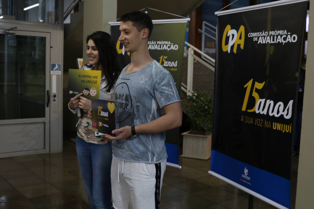 A Comissão Própria de Avaliação - CPA, responsável pelos processos avaliativos da Universidade, também marcou presença nas atividades de encerramento do Salão do Conhecimento, comemorando 15 anos de existência com uma cabine fotográfica, que foi instalada no Hall da Biblioteca Mario Osorio Marques, no campus Ijuí.