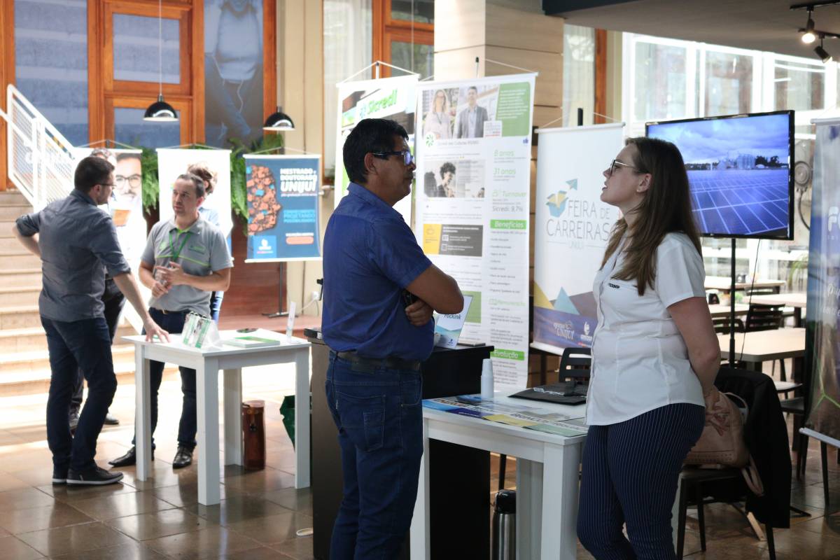 Além da palestra, a Feira abriu possibilidades para profissionais e empresas da região, e até de outros estados, conversarem. Um dos principais objetivos do evento é promover o encontro de estudantes, egressos e comunidade com organizações dos mais variados setores da região, em um ambiente propício para geração de oportunidades, networking, palestras e negócios. Neste contexto, mais de 20 empresas oportunizaram, nesta terça-feira, um número superior a 200 oportunidades profissionais durante o evento, posições que vão de estágios remunerados e programas de trainee, até cargos estratégicos.
