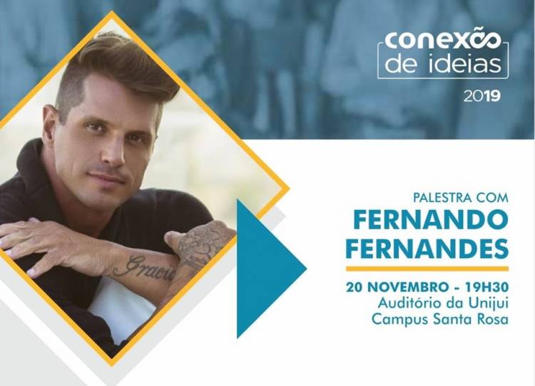 A Unijuí estará sediando o evento que integra o Projeto “Conexão de ideias 2019” na próxima quarta-feira, dia 20, às 19h30, no auditório central do Campus Santa Rosa. O tetracampeão mundial de paracanoagem Fernando Fernandes, abordará o tema Motivação e Foco para Superar Limites, que tem como objetivo proporcionar o diálogo, a reflexão social e a troca de saberes com grandes personalidades brasileiras.