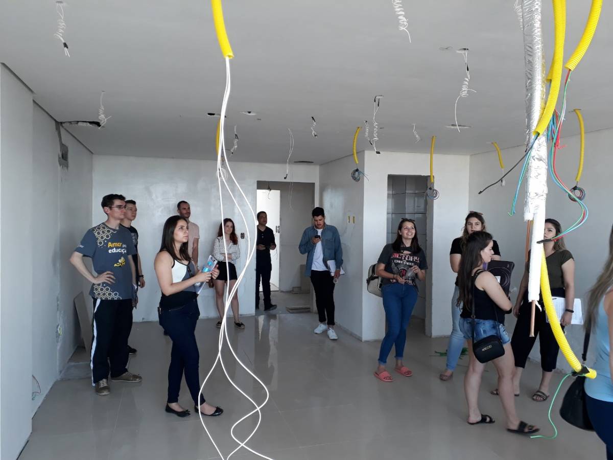 Ainda nesta visita técnica, os alunos puderam conferir os acabamentos, os revestimentos e as instalações elétricas, hidrossanitárias e de combate a incêndio utilizados, assim como a distribuição interna da edificação e sua funcionalidade.