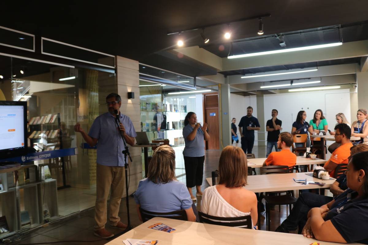 A Unijuí lançou, na tarde desta terça-feira, 03 de março, o Guia de Formatação de Trabalhos Científicos, organizado pela Biblioteca Universitária Mario Osorio Marques, com edição da Editora Unijuí e a contribuição de professores representantes de todos os Departamentos da Universidade, em evento promovido pelas Vice-Reitorias de Graduação e de Pós-Graduação, Pesquisa e Extensão, Editora Unijuí e Biblioteca Universitária, no Hall da Biblioteca do campus Ijuí. “É um momento ímpar para mostrar as potencialidades que temos na nossa Universidade. Cerca de 30 professores estiveram envolvidos neste importante conjunto de normas, trabalhando aspectos conhecidos por eles na questão de formatação de trabalhos dos estudantes, então é também um trabalho didático, construído a partir das experiências em sala de aula, na Graduação e nos Programas de Mestrado e Doutorado da Unijuí”, observou, durante o evento, o Vice-Reitor de Pós-Graduação, Pesquisa e Extensão, Fernando Jaime González.