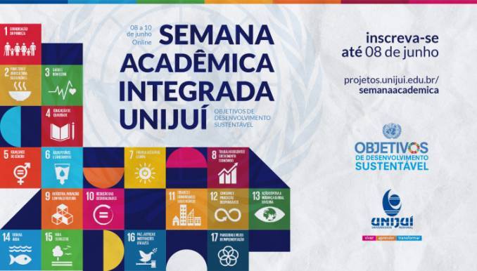 Inicia na próxima segunda-feira, dia 08, a Semana Acadêmica Integrada da Unijuí, que vai discutir os Objetivos de Desenvolvimento Sustentável (ODS), tendo a proposta de realizar o alinhamento das ações da Universidade, nas suas diversas dimensões, com estes Objetivos da Agenda 2030/ONU. Em razão da pandemia, o evento vai ocorrer de forma totalmente online e gratuita. As inscrições podem ser realizadas pelo site do evento, até a segunda, dia de início.