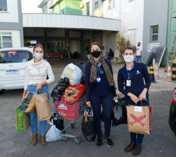Nesta quarta-feira, dia 17 de junho, as funcionárias do Núcleo de Desenvolvimento de Recursos Humanos da Unijuí, Fabrina Faganello e Marcella Wolff Klatt, realizaram a doação dos uniformes usados e sem condições de reaproveitamento para o Grupo de Senhoras Voluntárias do HCI. Em função da situação atual, o grupo não está se encontrando, porém, as peças foram entregues para a arquiteta Raquel Radaelli, que vai encaminhar para as voluntárias realizarem as atividades de casa. Estas peças serão desmanchadas e transformadas em novas peças e mantas para doação.