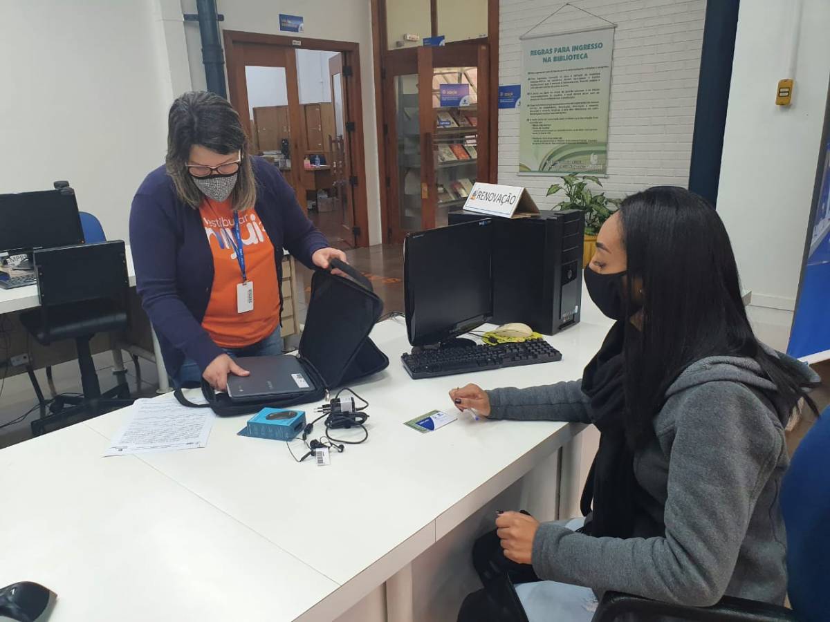Os estudantes que necessitarem de equipamento para acompanhar as aulas online podem enviar um e-mail para biblio@unijui.edu.br, solicitando o benefício e fazendo uma breve justificativa do motivo. Estes equipamentos, além de ficarem registrados no sistema da Biblioteca Universitária, são emprestados mediante a assinatura de um termo de comodato de uso, que especifica as responsabilidades da utilização enquanto estiver sob os cuidados do estudante. O empréstimo é feito por 30 dias, podendo ser renovado diretamente no sistema.