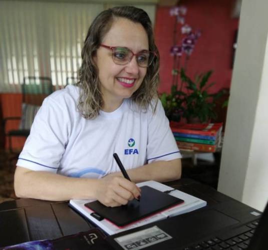 As aulas foram, sem dúvida, um dos grandes desafios impostos neste ano. Seja para professores, seja para os estudantes, e de todos os níveis de ensino ofertados. Para a professora de física da EFA, Rúbia Dallabrida Herrmann, no início a adaptação precisou ser rápida, com a realização de estudos dirigidos aos alunos pelo Portal. Duas semanas depois, com uma organização mais estruturada, ocorreu uma migração ao Class Room, com momentos síncronos e assíncronos de aulas. “Conseguimos um resultado, ficou muito melhor desta forma. Mesmo não sendo fácil essa adaptação, mas tendo em vista a necessidade foi muito importante. Agora, depois de um tempo, já estamos adaptados, nós professores e alunos, a este contexto de ensino. Entendo que as atividades presenciais na educação são fundamentais, em razão das relações e interação das pessoas, mas pelo Meet e outras plataformas, tento fazer com que seja dinâmico, para manter os alunos conectados da forma mais agradável possível. A utilização destes meios têm trazido benefícios para as turmas de forma geral. Muitos alunos que não participavam ou não conseguiam ter uma organização otimizada presencialmente, agora estão indo super bem nestas questões. Apesar de todos os problemas de saúde, 2020 me transformou enquanto profissional, consigo perceber evolução na minha formação, por conseguir me organizar para estudar também!”, complementa.