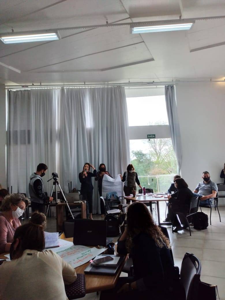 Para dar conta desta atividade realizada de forma presencial, foram tomadas as medidas conforme Plano de Contingência da Unijuí para prevenção, monitoramento e controle da transmissão do COVID - 19. Os professores pertencentes ao grupo de risco, acompanharam e interagiram nas discussões por meio do Google Meet.