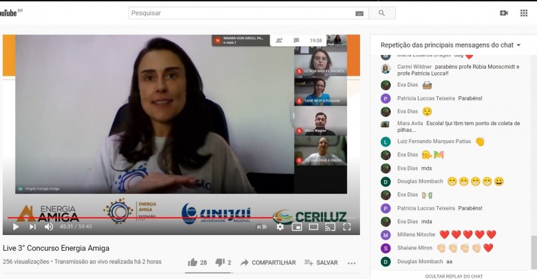 Uma live, realizada na tarde desta segunda-feira, dia 21 de dezembro, pelo canal do Youtube da Unijuí, marcou o encerramento de mais uma etapa do Projeto de Extensão Energia Amiga. Acompanhado por alunos, professores e familiares, o evento online contou com a sistematização do projeto e também com a divulgação dos alunos que se destacaram no 3º Concurso Energia Amiga de Desenho e Redação. Neste ano, os estudantes foram desafiados a colocar no papel a visão sobre o tema energia.