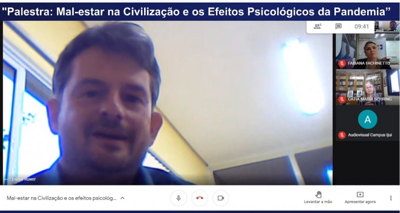 A fala foi complementada pela vice-reitora de Graduação, professora Fabiana Fachinetto, que reiterou a necessidade de refletir sobre o fazer diário, começando com uma avaliação sobre os efeitos da pandemia na vida de todos. Hoje, o tema debatido foi “Mal-estar na civilização e os efeitos psicológicos da pandemia”, pelo psicólogo e professor aposentado do curso de Psicologia da Universidade, Nilson Heidemann, e pelo psicólogo junto à Secretaria Municipal de Educação de Ijuí, Daniel Ruwer.