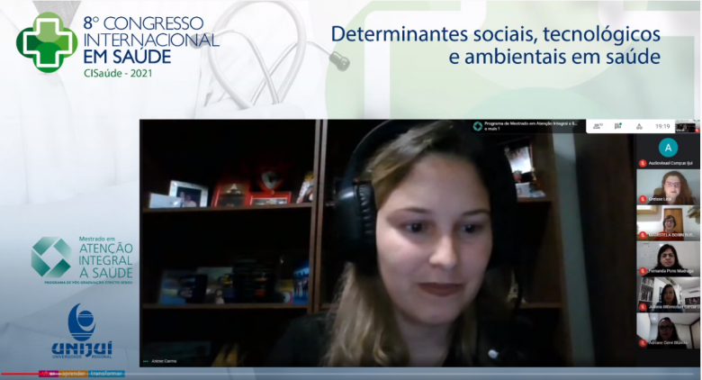 O 8º Congresso Internacional em Saúde recebeu, na noite desta quinta-feira, dia 20 de maio, a técnica da Coordenação Geral de Alimentação e Nutrição do Departamento de Promoção da Saúde da Secretaria de Atenção Primária do Ministério da Saúde, Ariane Carmo. Em uma palestra que foi transmitida pelo canal da Unijuí no Youtube, a convidada falou sobre o “As estratégias de políticas públicas para o enfrentamento da obesidade". A fala antecedeu as palestras sobre o "Projeto EcoSus" e sobre os "Encontros formativos com profissionais de saúde do SUS e o enfrentamento da obesidade: uma abordagem na perspectiva da pesquisa-ação”.