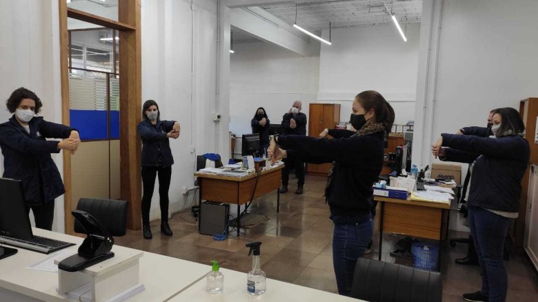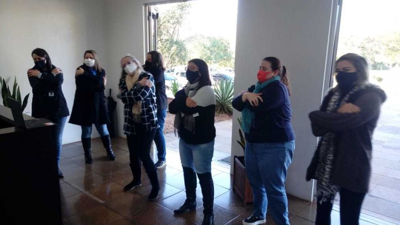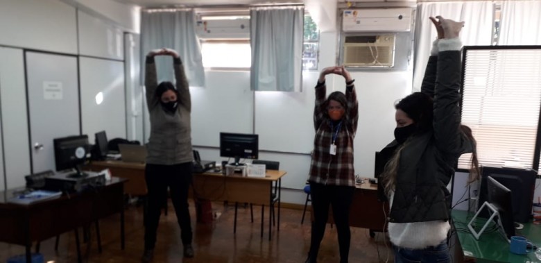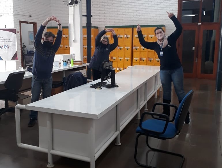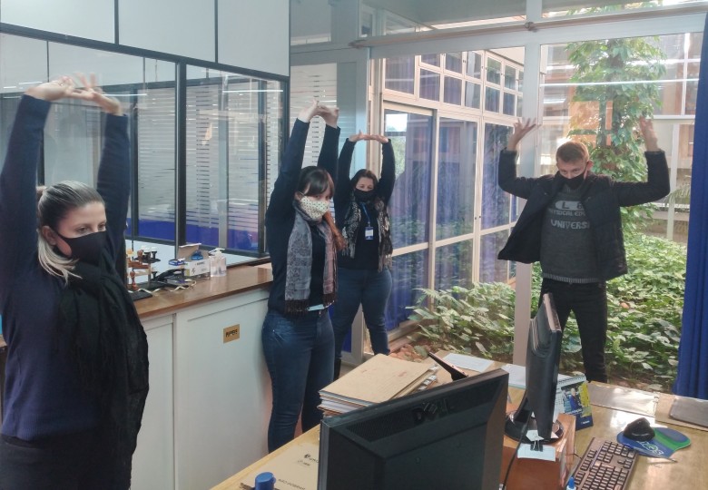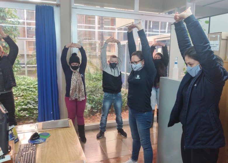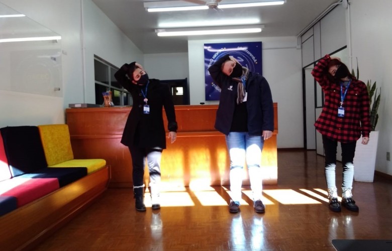“O objetivo foi incentivar a prática regular de atividades físicas e a interação entre os quatro campi”, explicou uma das técnicas dos laboratórios, Michele Basso, que realizou a atividade ao lado da também técnica, Tatiane Renz. “A atividade, realizada durante 15 minutos, foi composta por movimentos de dança, acompanhados de música, exercícios físicos, alongamento muscular e volta à calma”, completou a educadora física.