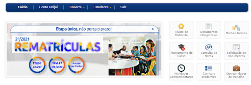 A partir desta quinta-feira, dia 10 de junho, acadêmicos da Unijuí já podem realizar a rematrícula para o segundo semestre de 2021. Basta acessar o Portal do Estudante, clicar diretamente no banner (abaixo)