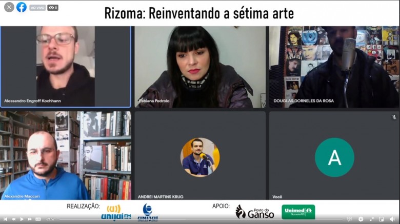 Para avaliar todo este cenário, o Rizoma Temático da Unijuí FM abordou nesta quinta-feira, dia 17 de junho, o tema “Reinventando a Sétima Arte: as transformações do cinema”. Foram convidados para o bate-papo o pesquisador de História do Cinema, doutorando em Comunicação pela UFSM e produtor do Instagram Cinemacc - Uma viagem cinematográfica, Alexandre Maccari; o roteirista, jornalista, assistente de direção-geral e diretor de Comunicação do Festival de Roteiro Audiovisual de Porto Alegre (Frapa), Alessandro Engroff; e a doutoranda na Unioeste, pesquisadora de cinema e outras artes e integrante do projeto Cinema e Direitos Humanos, do Programa de Pós-Graduação em Direitos Humanos da Unijuí, Fabiana Domingos Pedrolo.