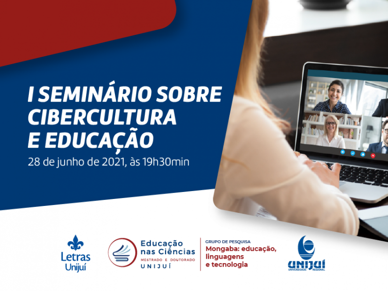 Na próxima segunda-feira, dia 28 de junho, a partir das 19h30, acontece o I Seminário sobre Cibercultura e Educação, com transmissão pelo canal da Unijuí no Youtube. O evento é promovido pelo curso de Letras da Unijuí, em parceria com o Grupo de Pesquisa “Mongaba: educação, linguagens e tecnologia” do Programa de Pós-Graduação em Educação nas Ciências.