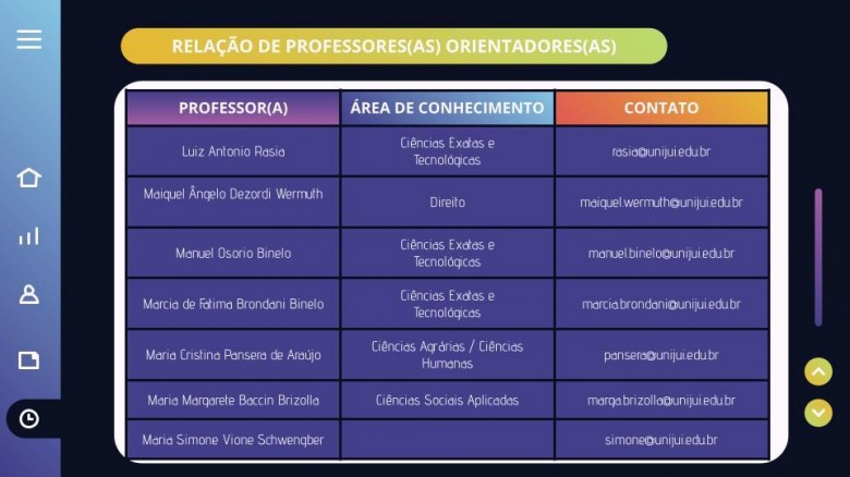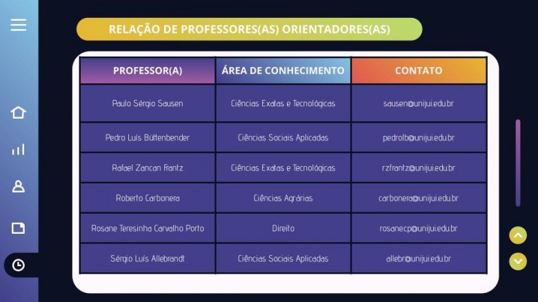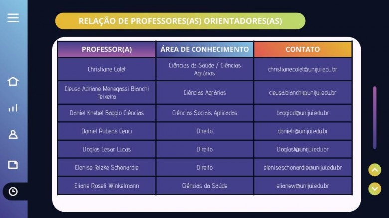 Confira as áreas e os contatos dos professores responsáveis por projetos de pesquisa: